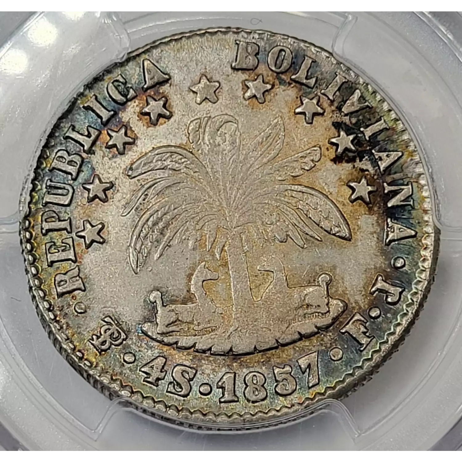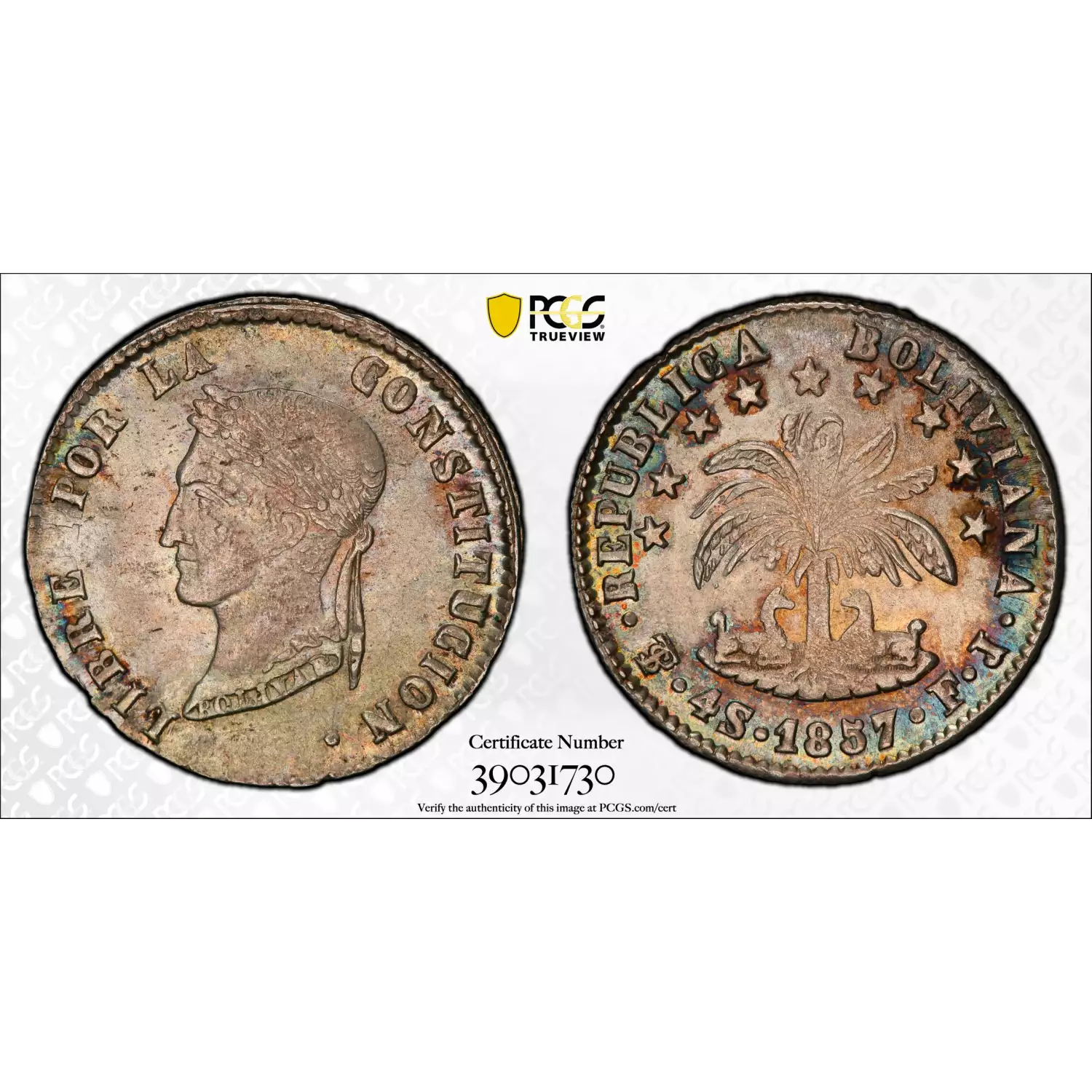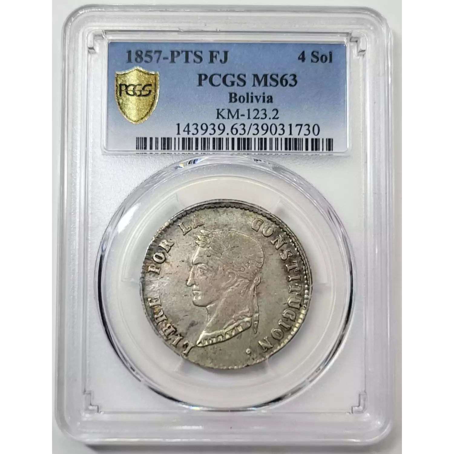 1857 PTS FJ Bolivia Silver 4 SOLES PCGS MS-63 KM-123.2 KM#123.2