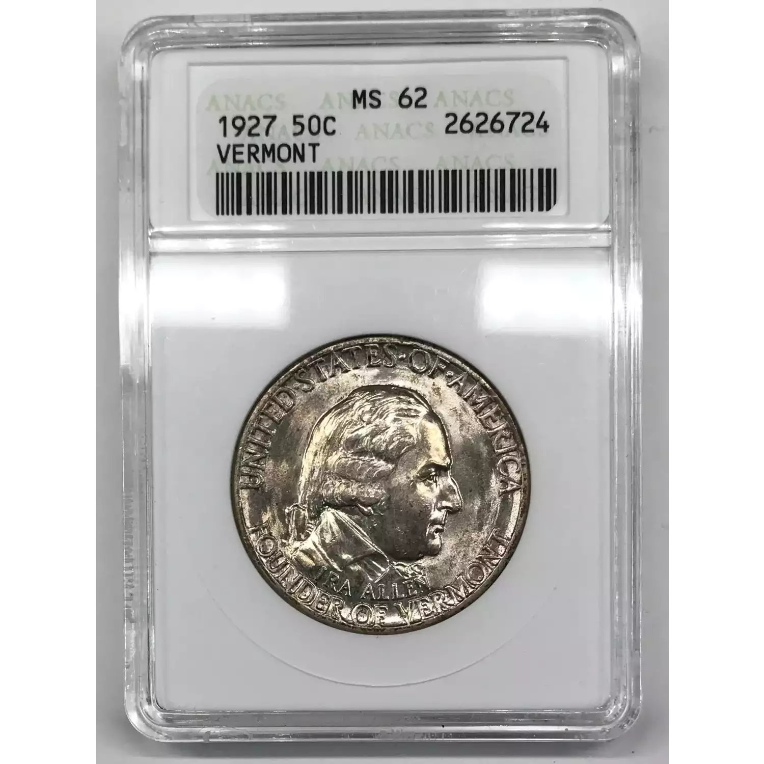 1927 P Vermont Sesquicentennial Commemorative Half Dollar ANACS MS-62 - old white soapbox holder