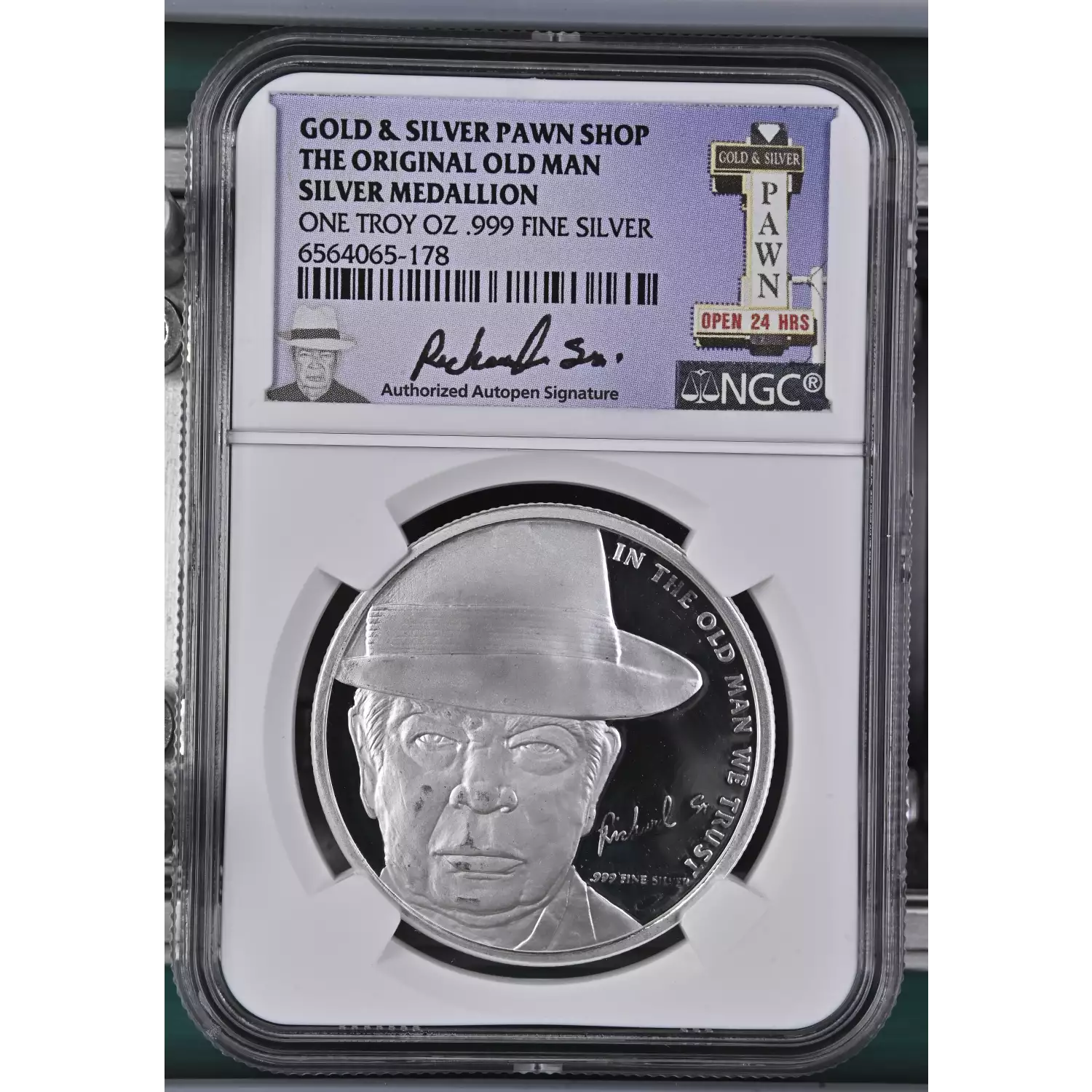 GOLD & SILVER PAWN SHOP "THE ORIGINAL OLD MAN" 1 oz Proof Silver Round/Medallion - NGC Autopen Signature Label