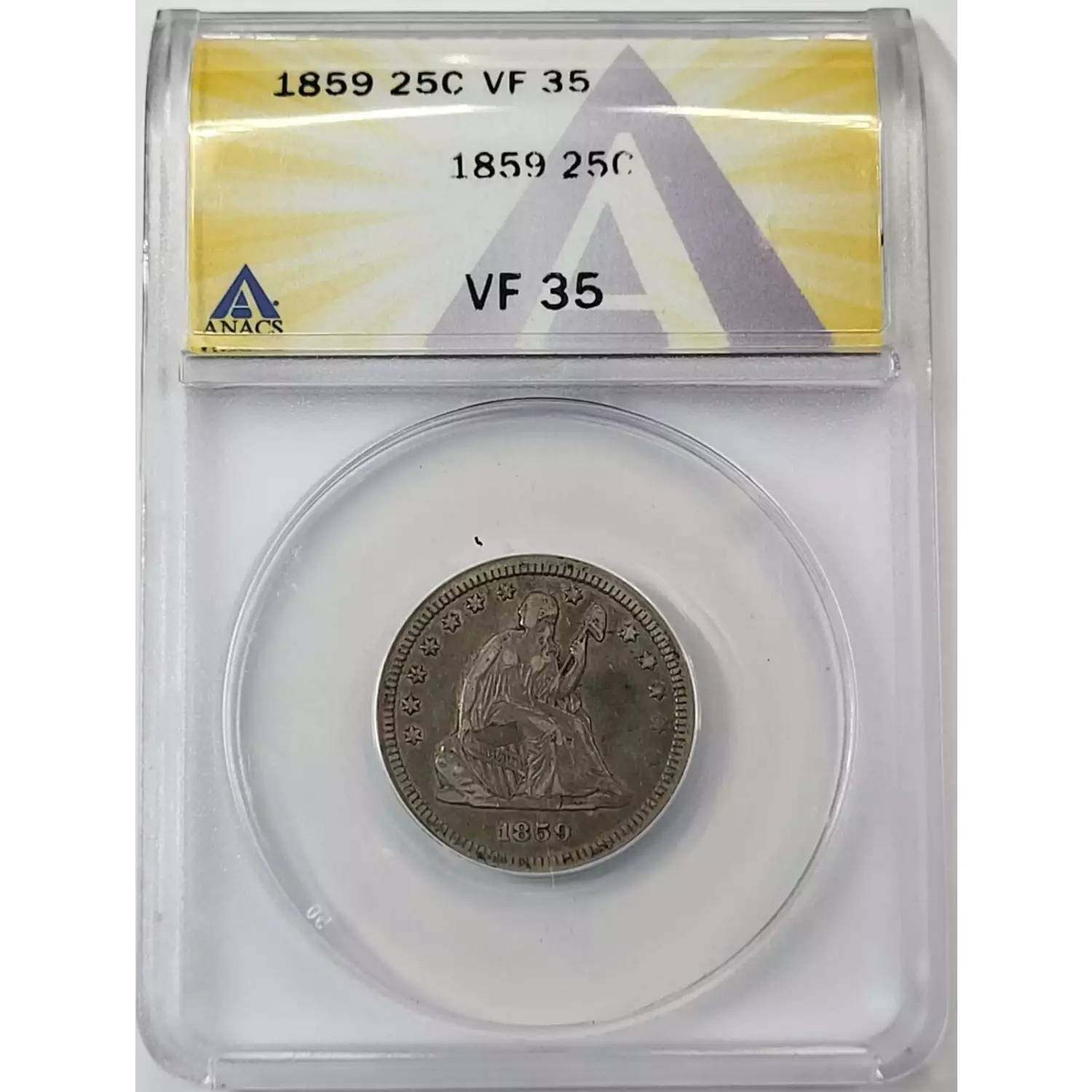 1859 Seated Liberty Quarter ANACS VF-35
