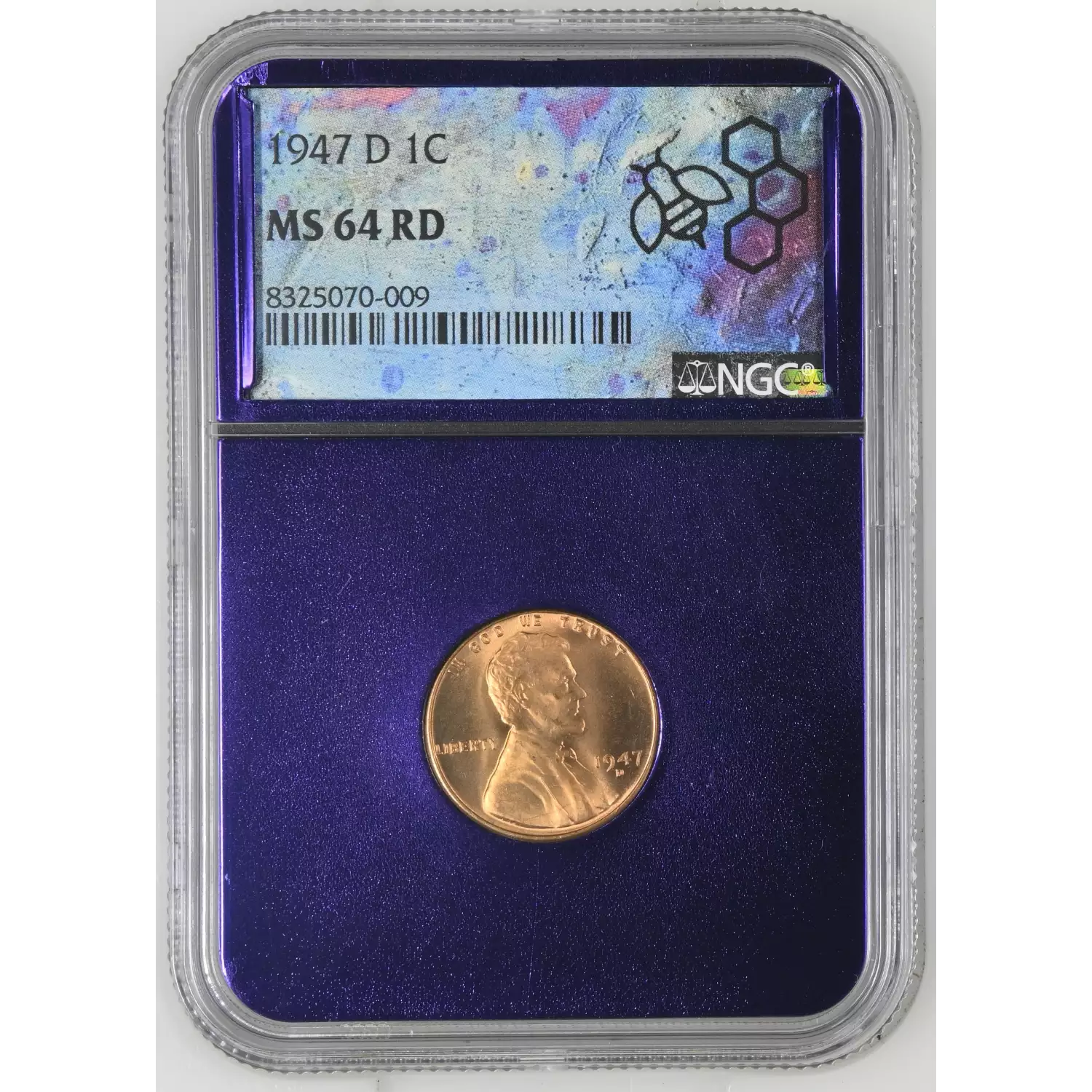 1947 D Lincoln Wheat Cent NGC MS-64 RD - TraderBea Label & Purple Core