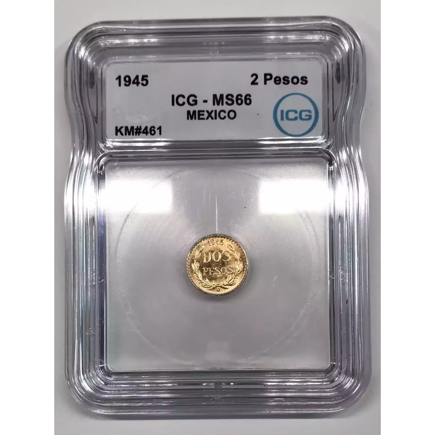 1945-Mo MEXICO Gold 2 PESOS ICG MS-66 - KM#461