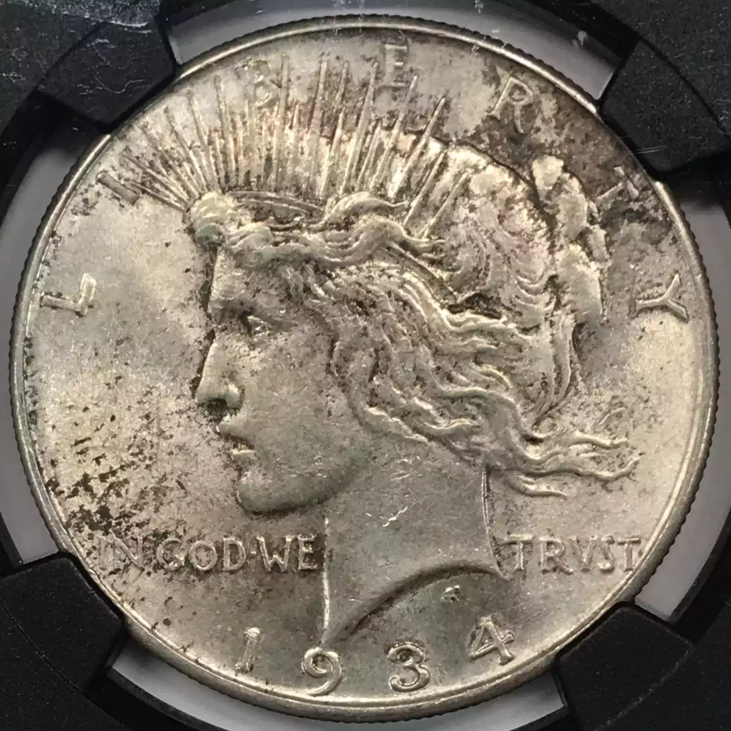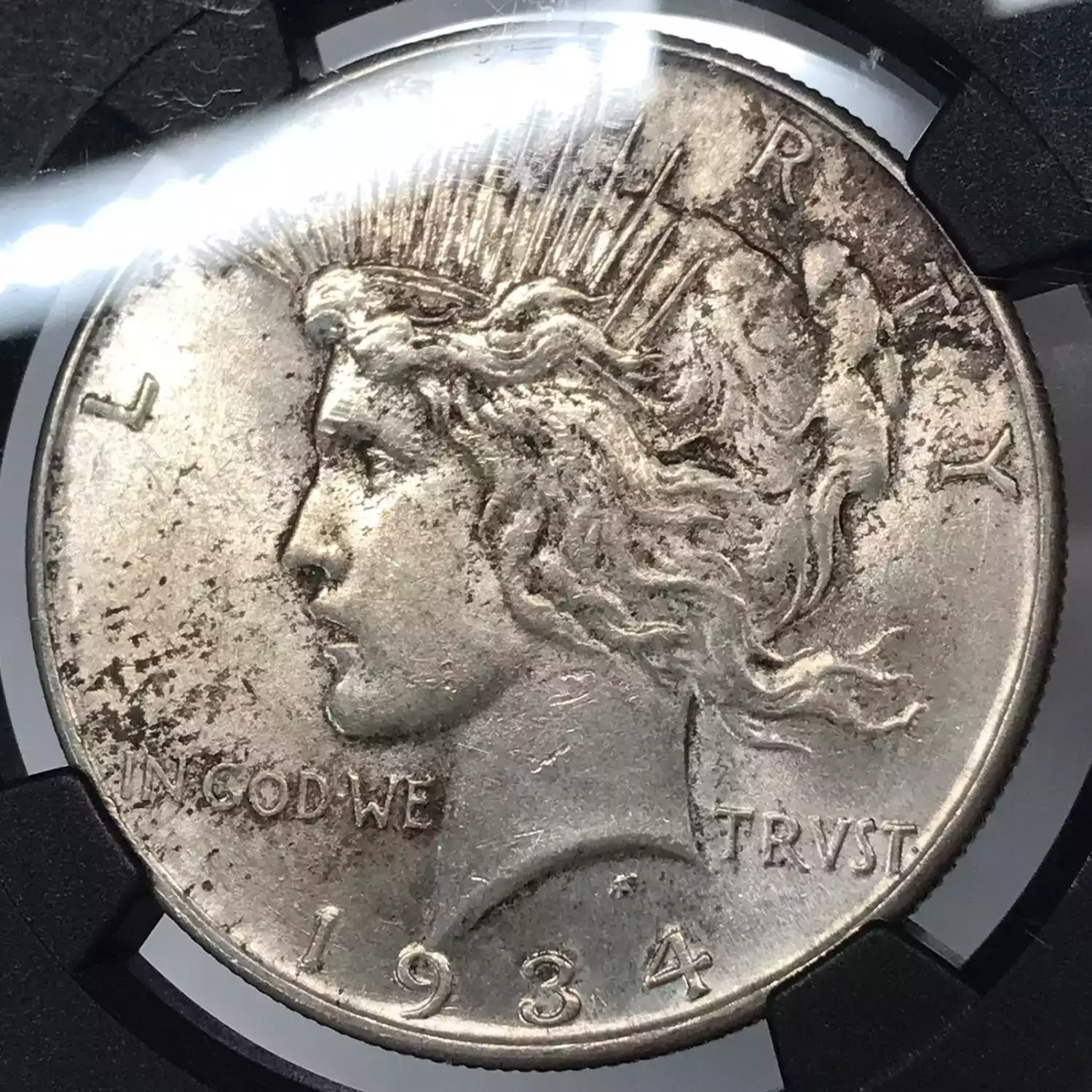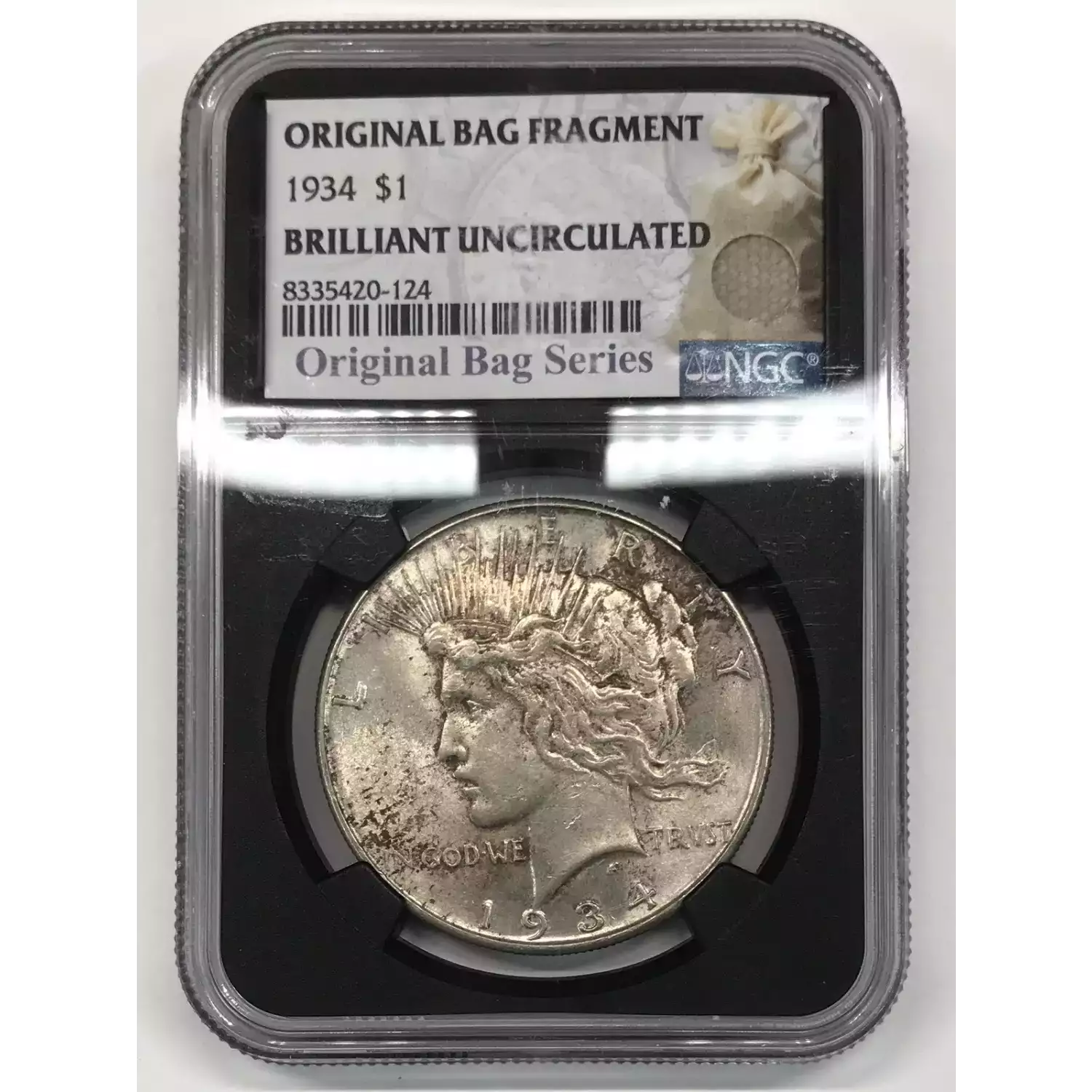 1934 Peace Silver Dollar NGC BRILLIANT UNCIRCULATED Original Bag Fragment Series