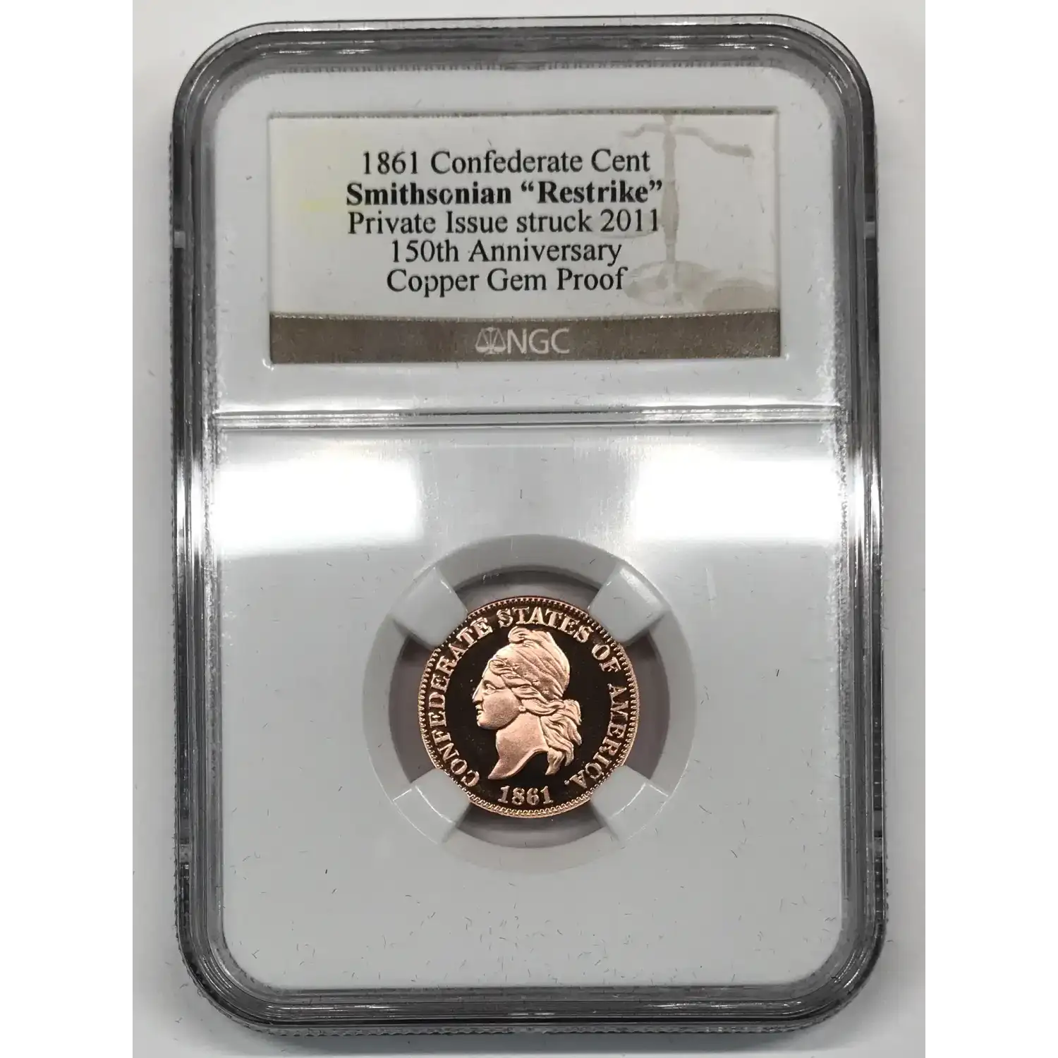 1861 Copper Confederate Cent Smithsonian "Restrike" NGC Gem Proof - Private Issue Struck 2011 - 150th Anniversary