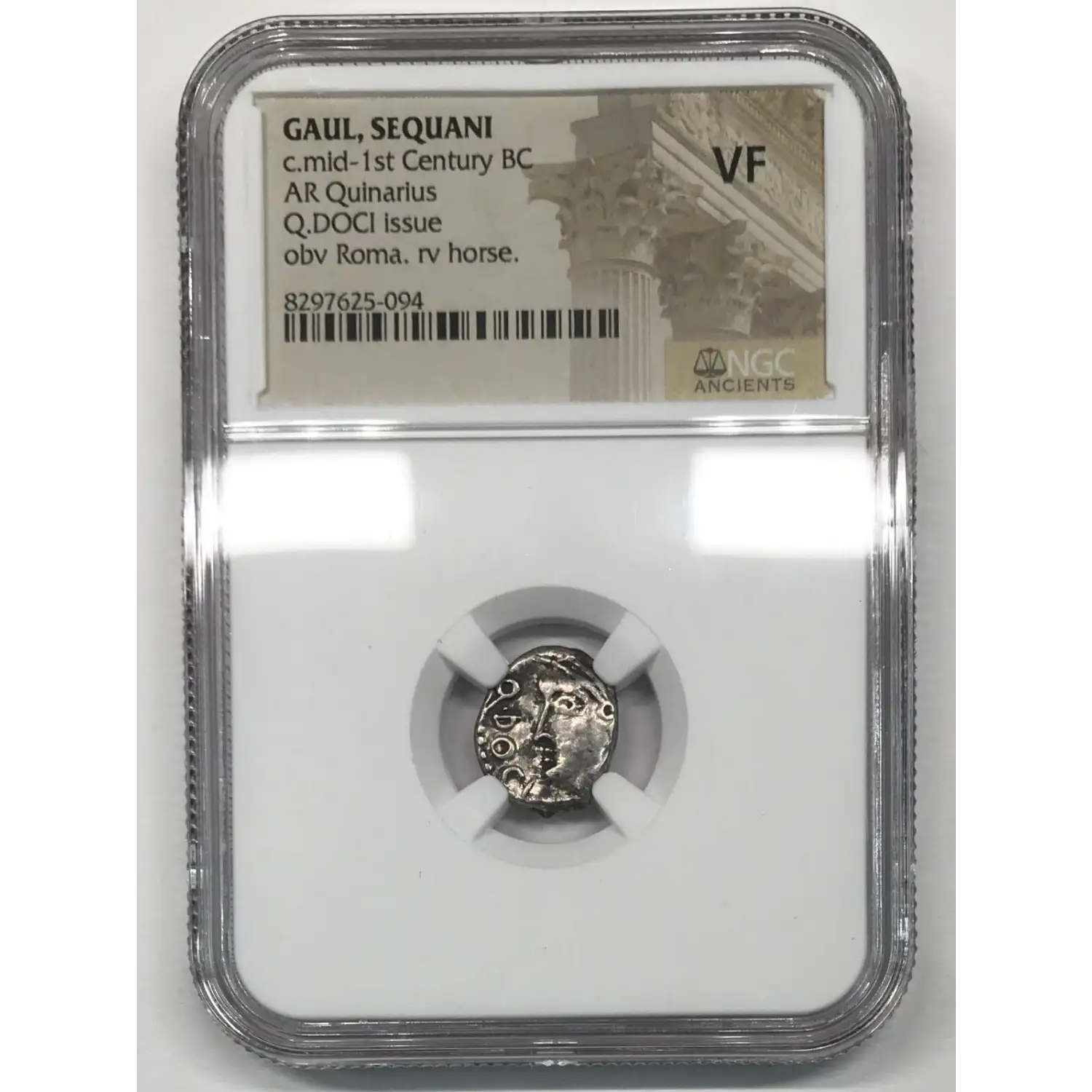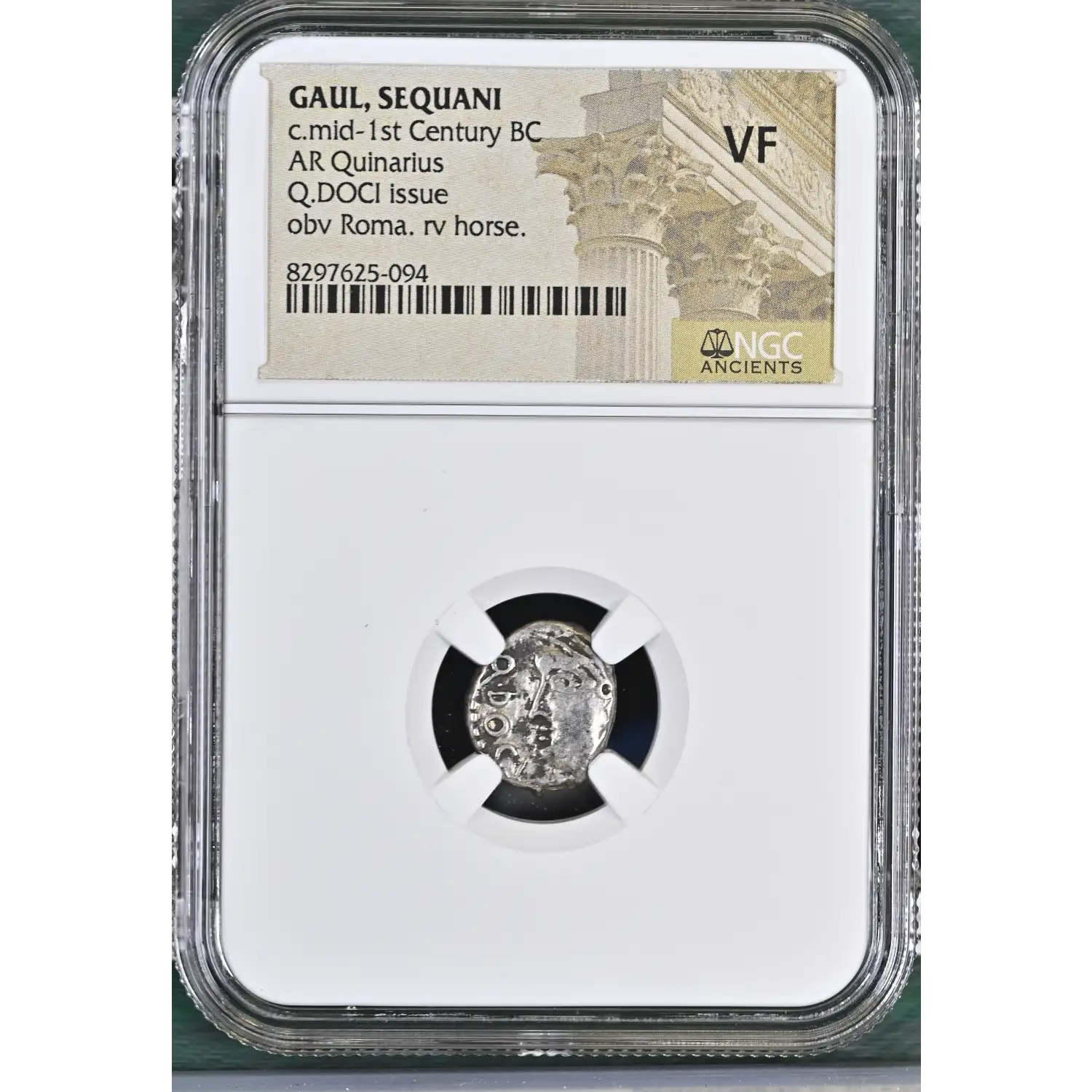 Gaul, Sequani, c. mid-1st Century BC, AR Quinarius Q.DOCI issue obv Roma rv horse NGC Ancients VF