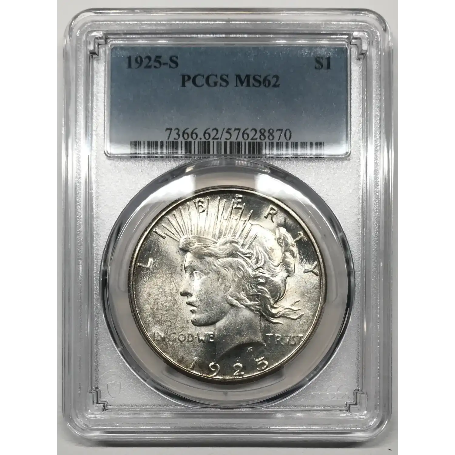 1925-S Peace Silver Dollar PCGS MS-62 TOP 50 VAM-2 DDR Doubled Reverse Leaves Olive Branches