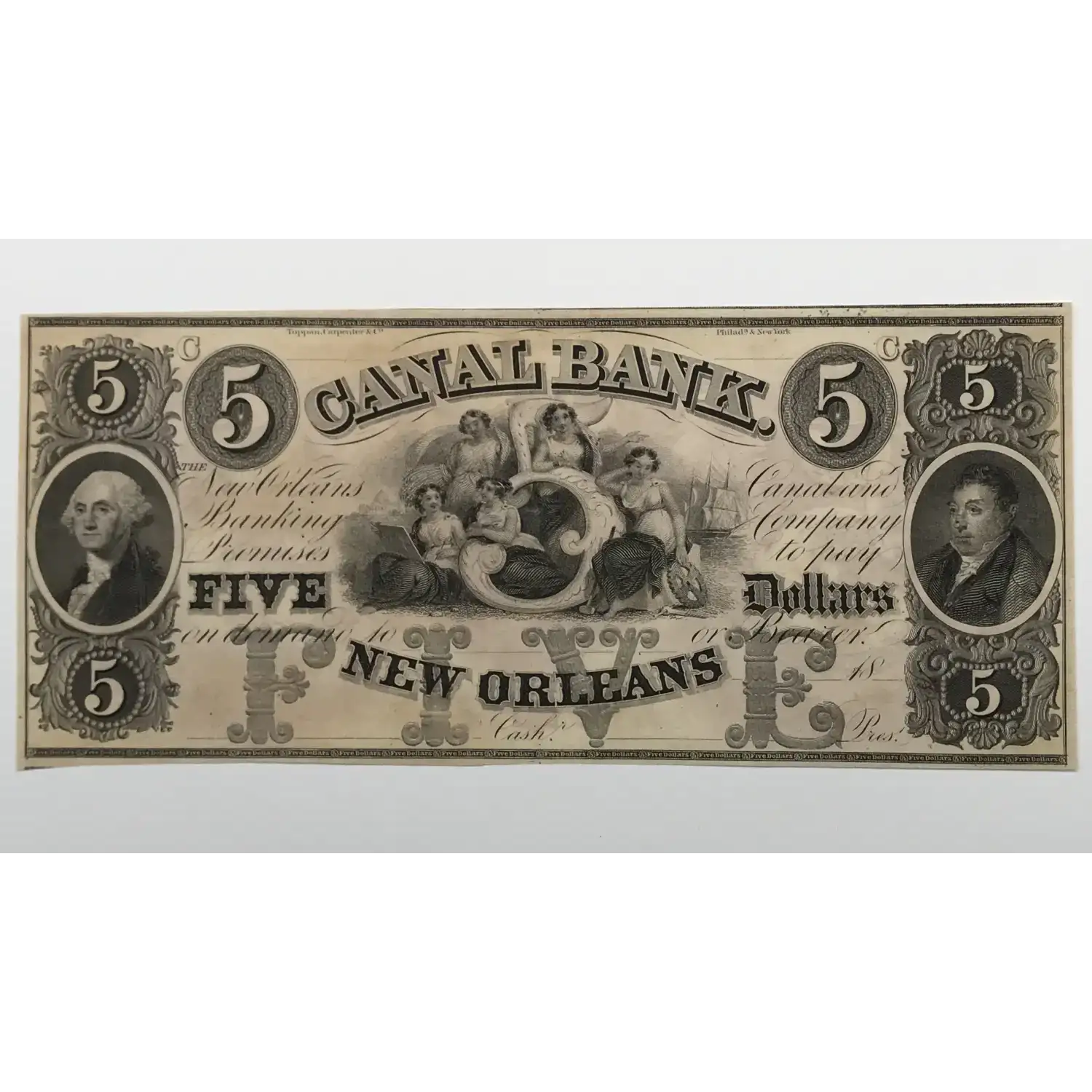 1800s Canal Bank New Orleans Louisiana $5 Remainder Note