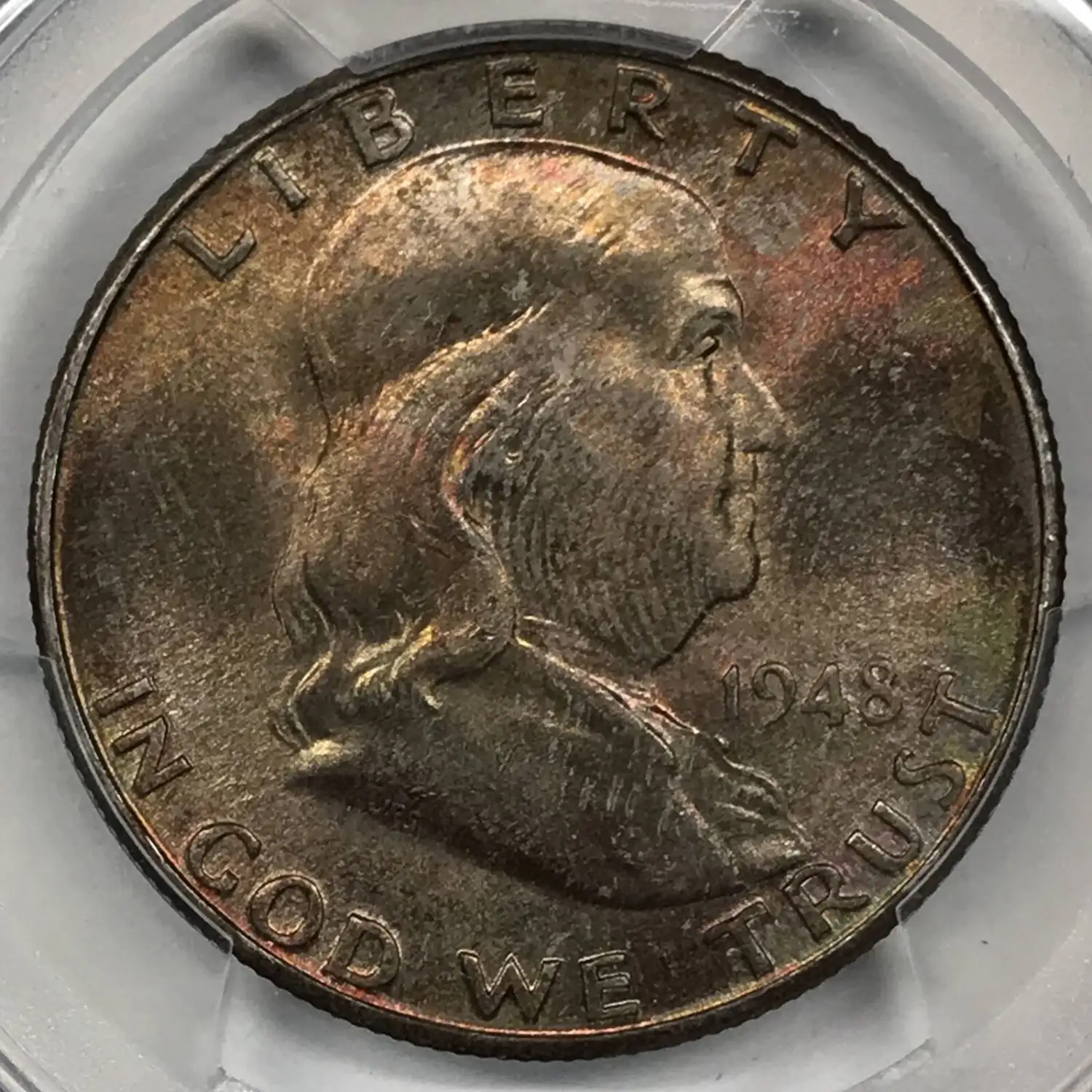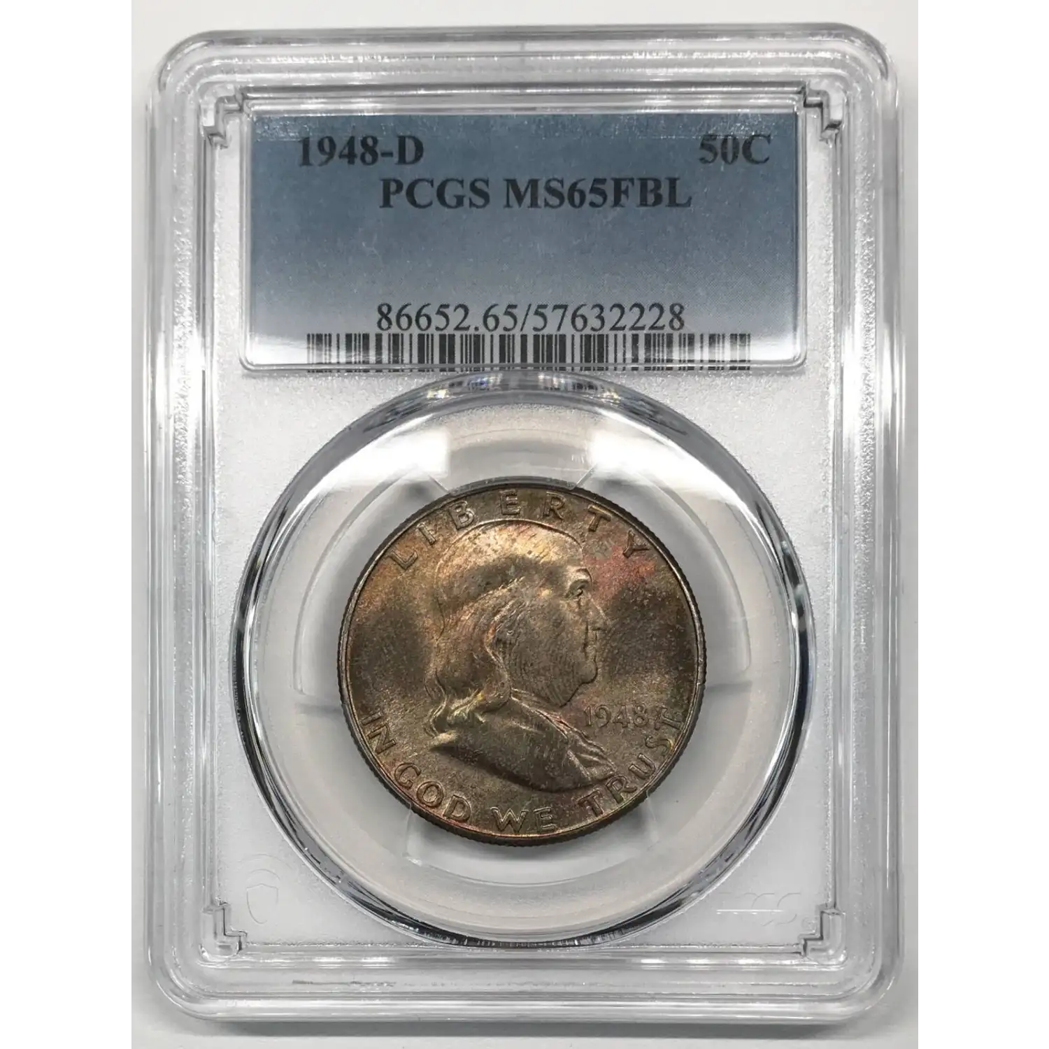 1948 D Franklin Half Dollar PCGS MS-65 FBL *Rainbow Toning*