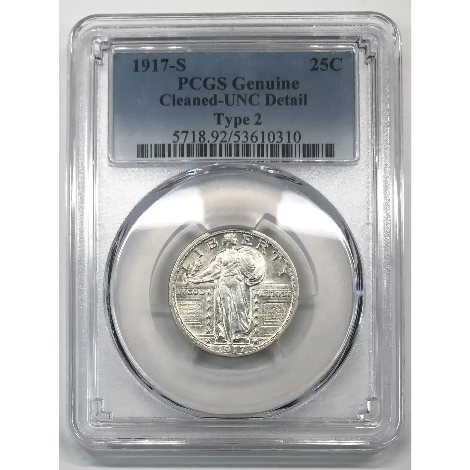 1917-S Standing Liberty Quarter PCGS Genuine - UNC Details (92 - Cleaned) Type 2