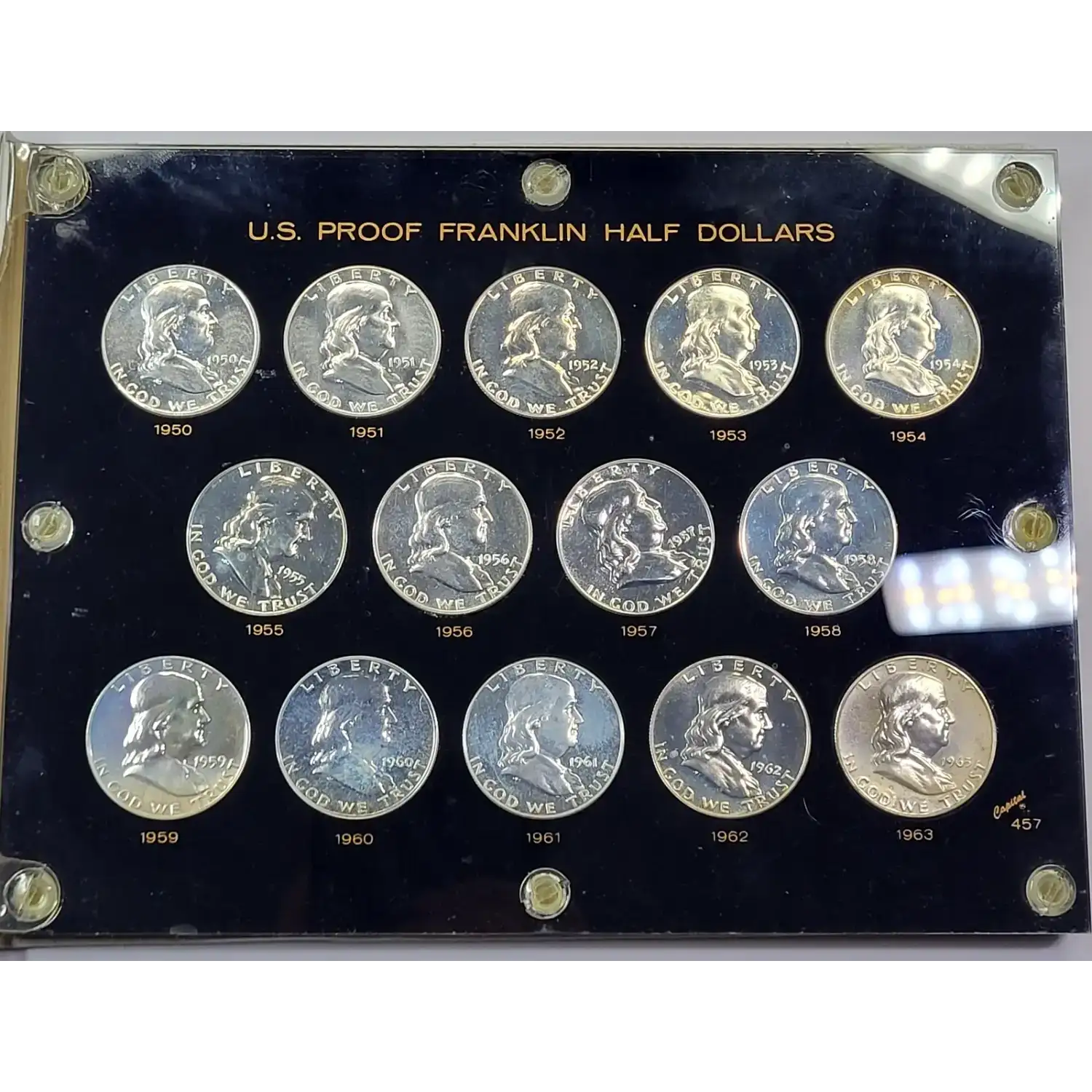 1950-1963 Proof Franklin Half Dollar 14-Coin Set in Capital Plastics Holder 457