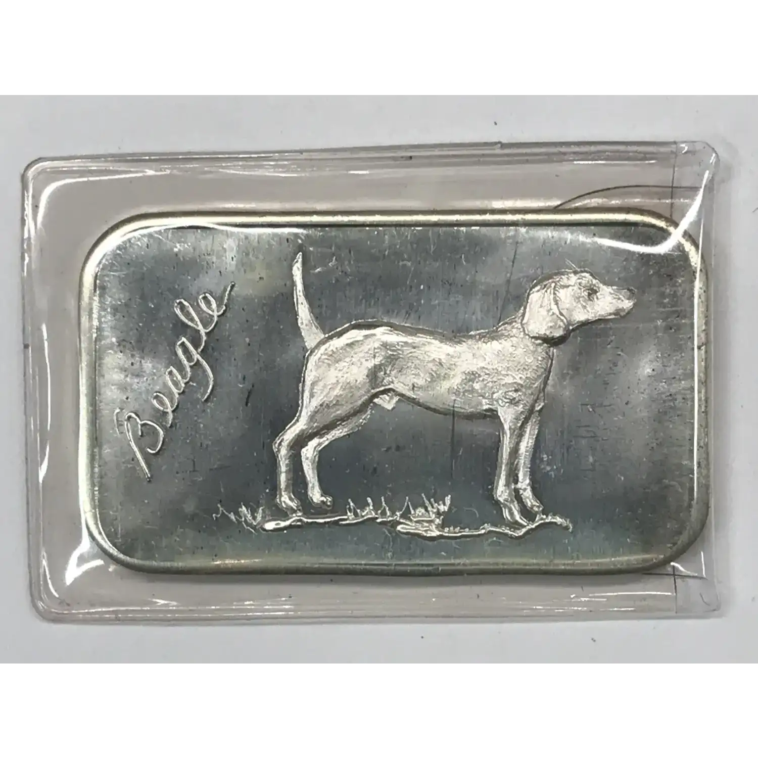 - 1 oz Silver Bar Beagle Dog Breed - Justice Mint