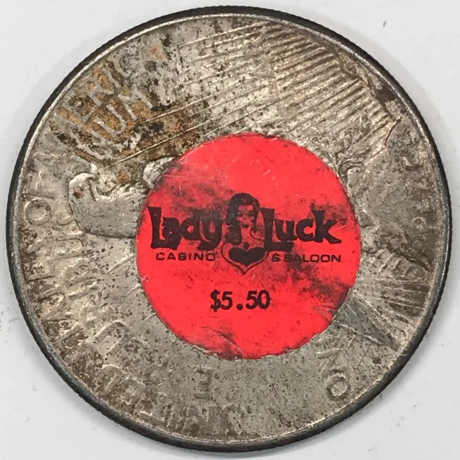 Lady Luck Casino & Saloon $5.50 - 1923-S Peace Sticker Dollar
