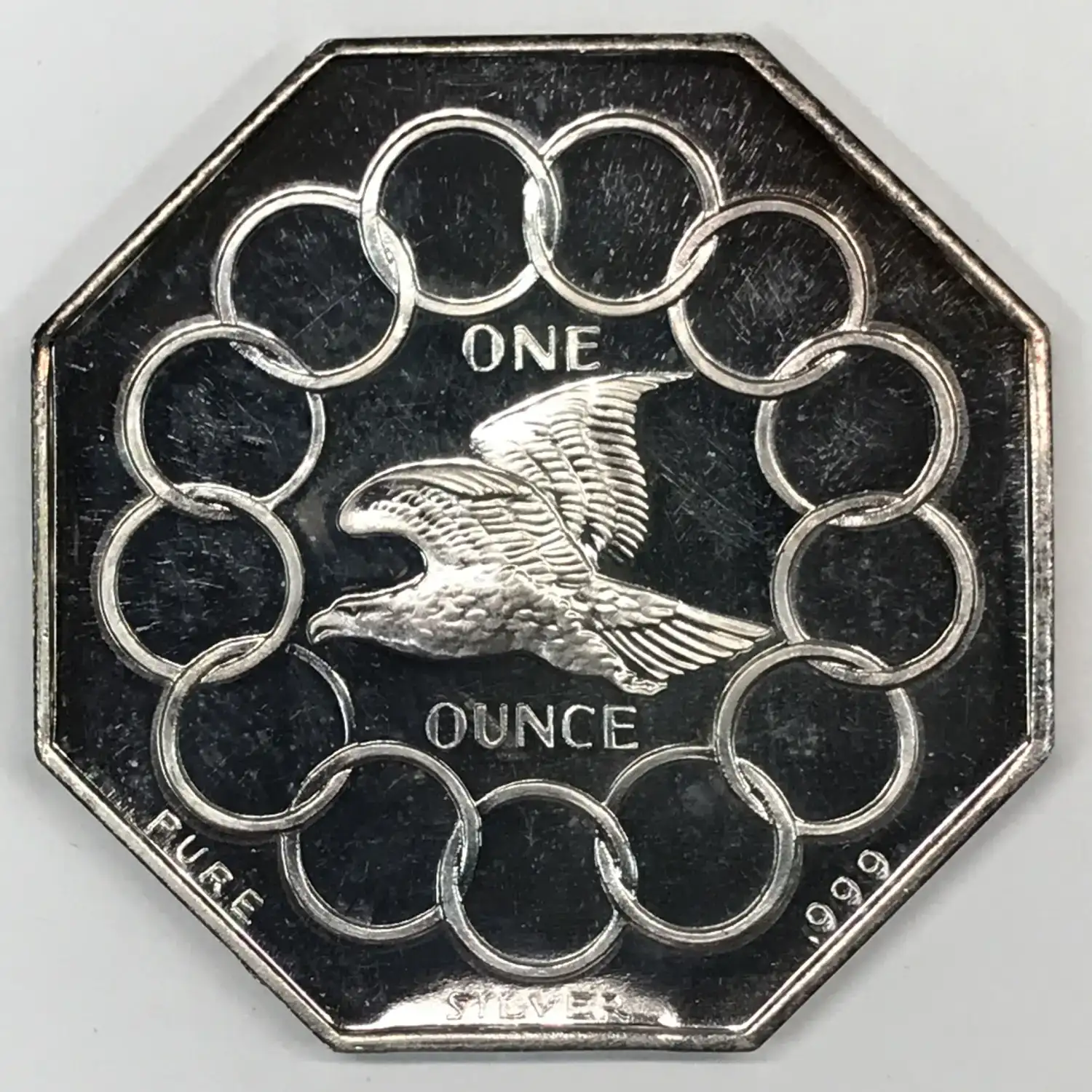1776-1976 USA 200 Years of Liberty Octagonal 1 oz Silver Art Round/Bar - Flying Eagle / 13 Rings - Vintage