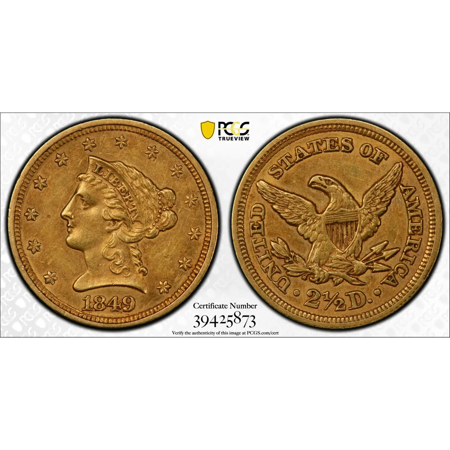 1849 P $2.50 Gold Liberty Head Quarter Eagle PCGS AU-55 - D.L. Hansen Collection Label