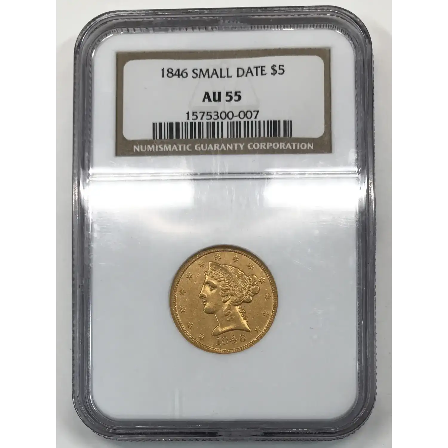 1846 $5 Gold Liberty Head Half Eagle NGC AU-55 Small Date
