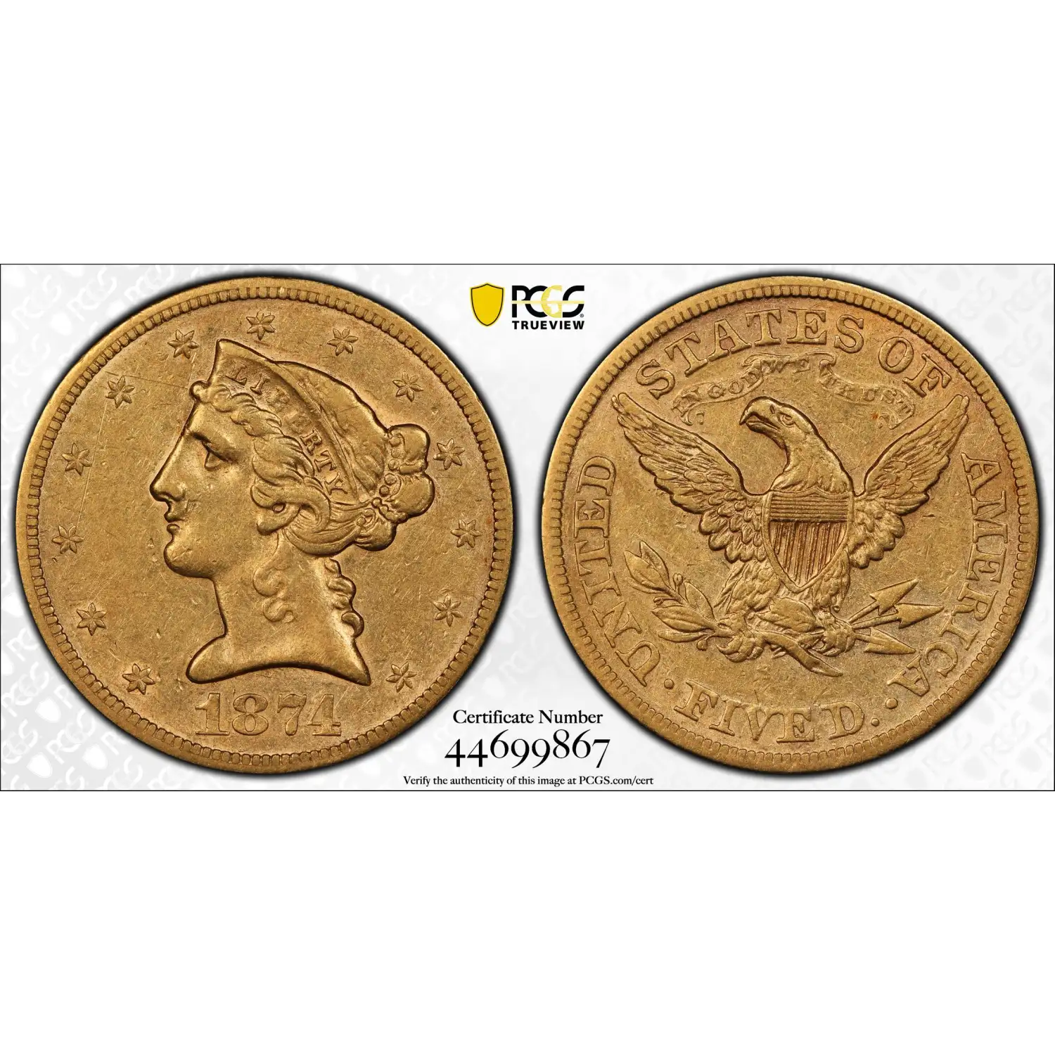 1874-S $5 Gold Liberty Head Half Eagle PCGS XF-40