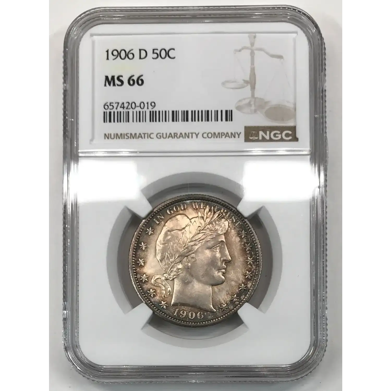 1906-D Barber Half Dollar NGC MS-66