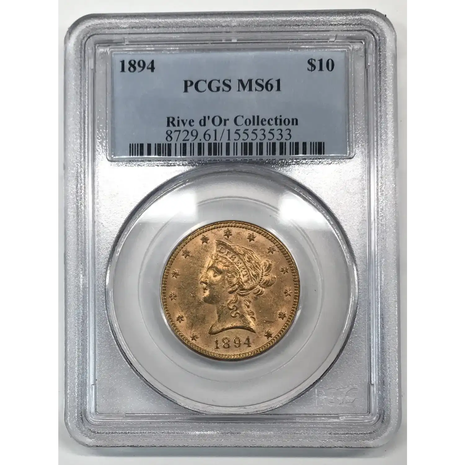 1894 $10 Gold Liberty Head Eagle PCGS MS-61 Rive d'Or Collection