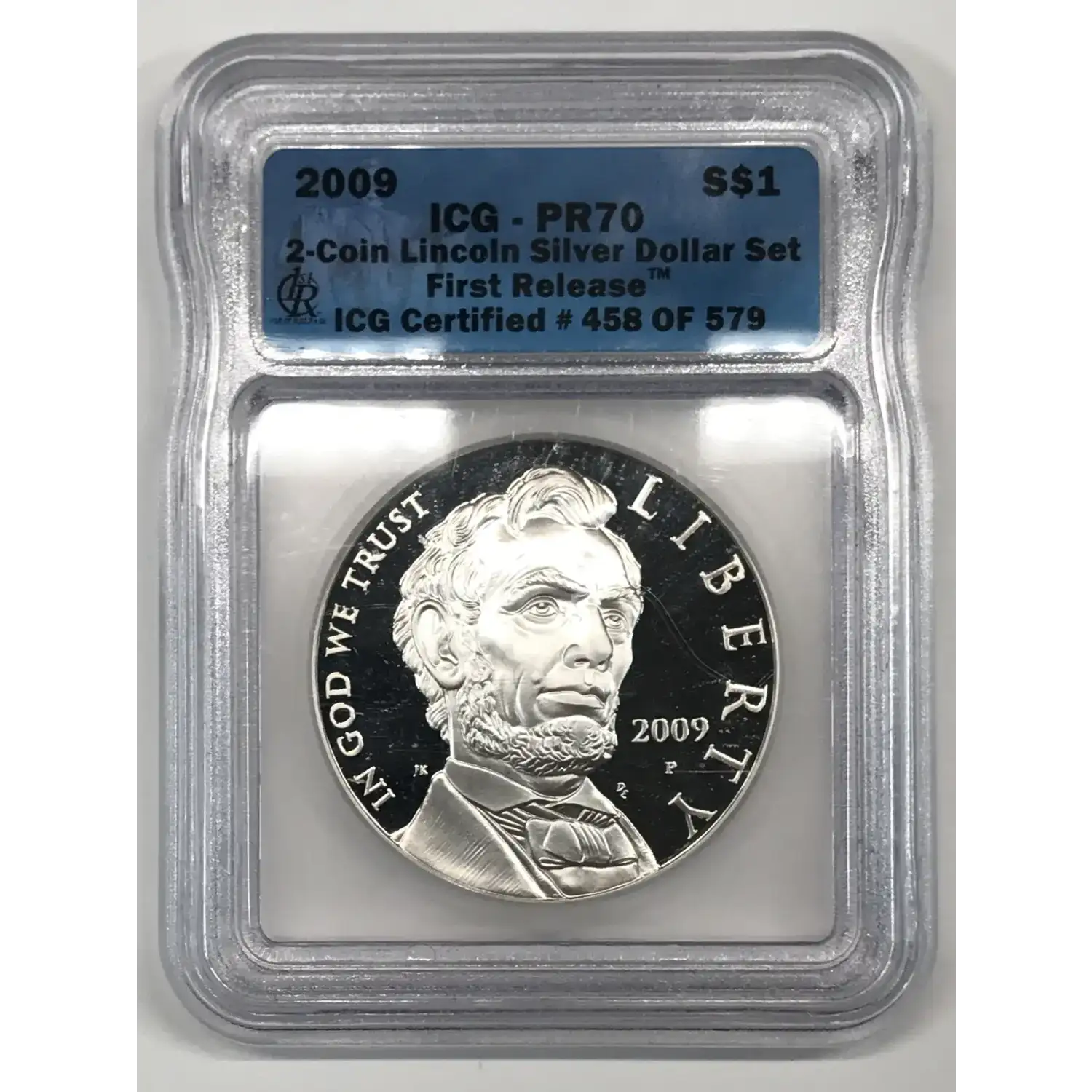 2009-P Proof Abraham Lincoln Bicentennial Commemorative Silver Dollar ICG PR-70 - First Release ICG Certified #458 of 579
