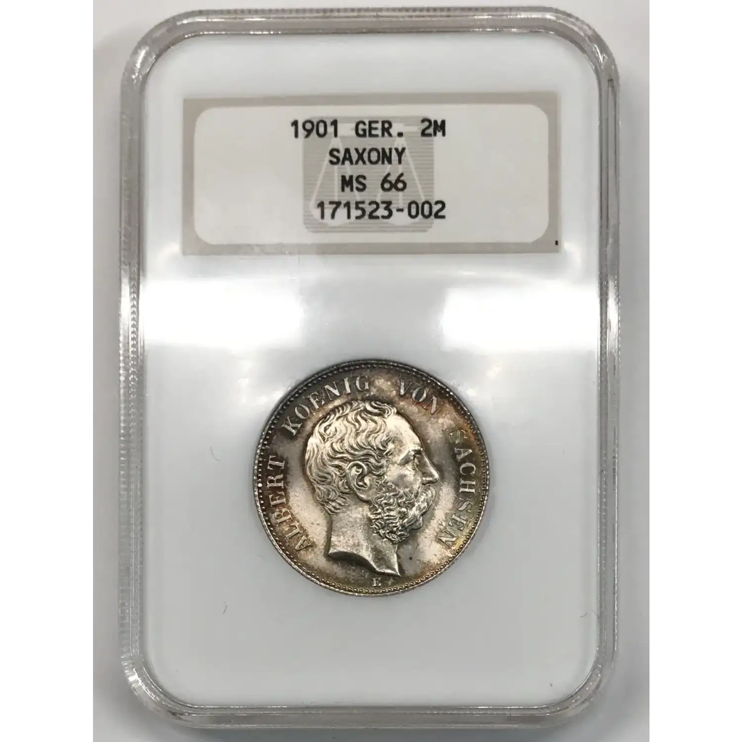 1901 E SAXONY GERMAN STATES Silver 2 MARK NGC MS-66 - Albert Koeng Von Sachsen - KM#1245 - nice look/tone - Old Fatty Holder