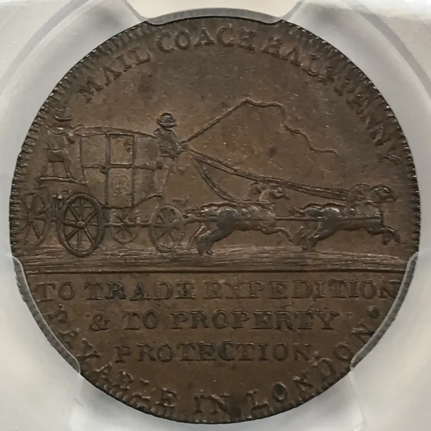1797 Great Britain Copper Half Penny Conder Token PCGS MS-62 BN DH-363 Middlesex, Palmer's Mail Coach