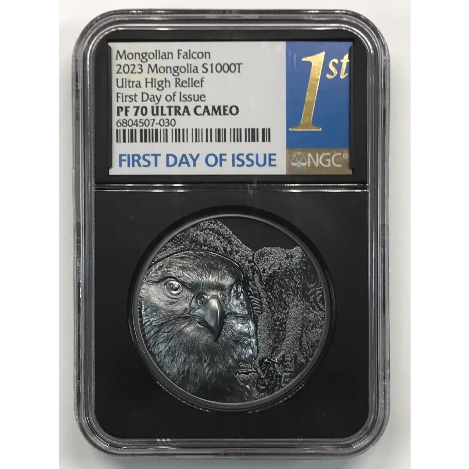 2023 Proof Mongolian Falcon Ultra High Relief 2 oz Silver 1000T NGC PF-70 ULTRA CAMEO First Day of Issue