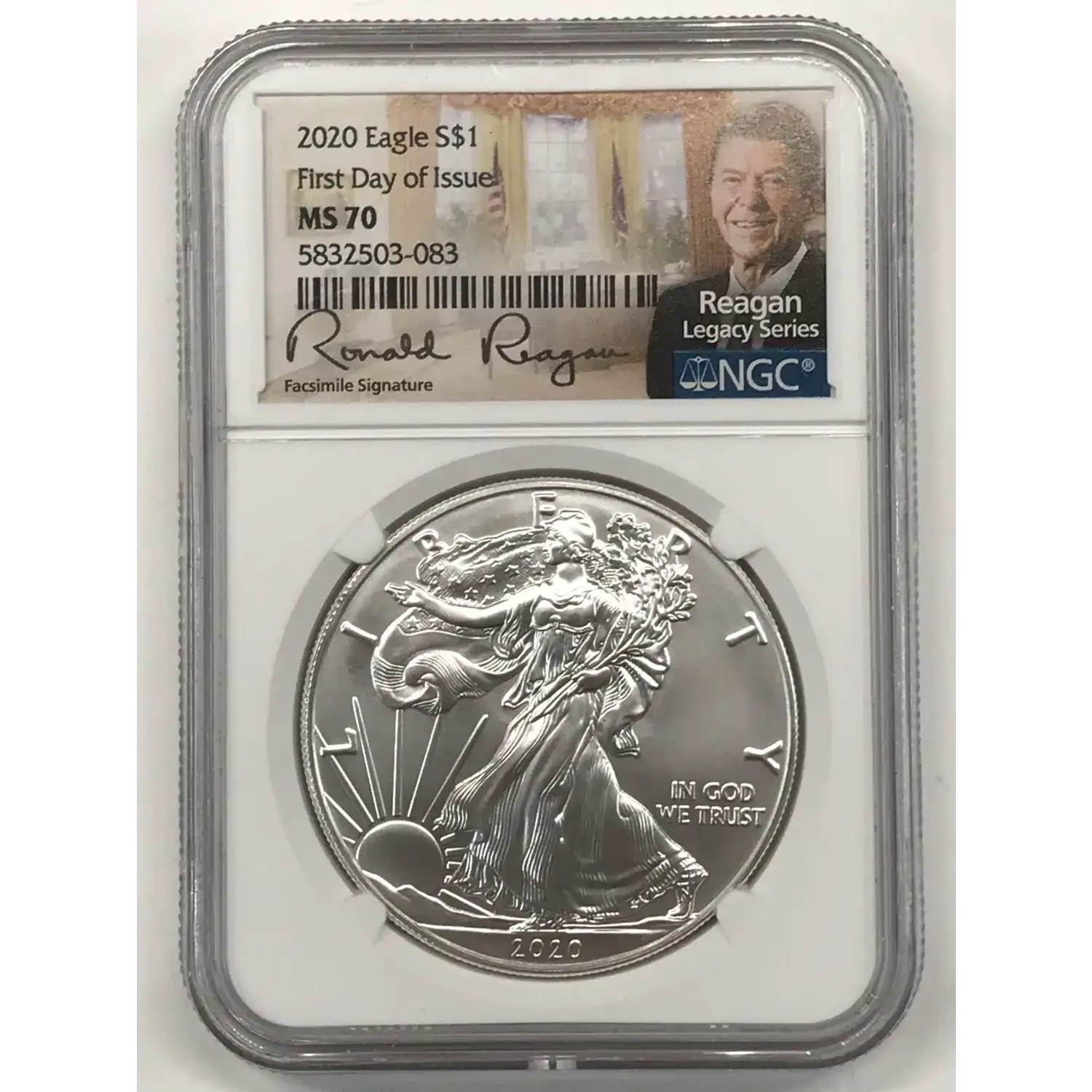 2020 Silver Eagle NGC MS-70 First Day of Issue Reagan