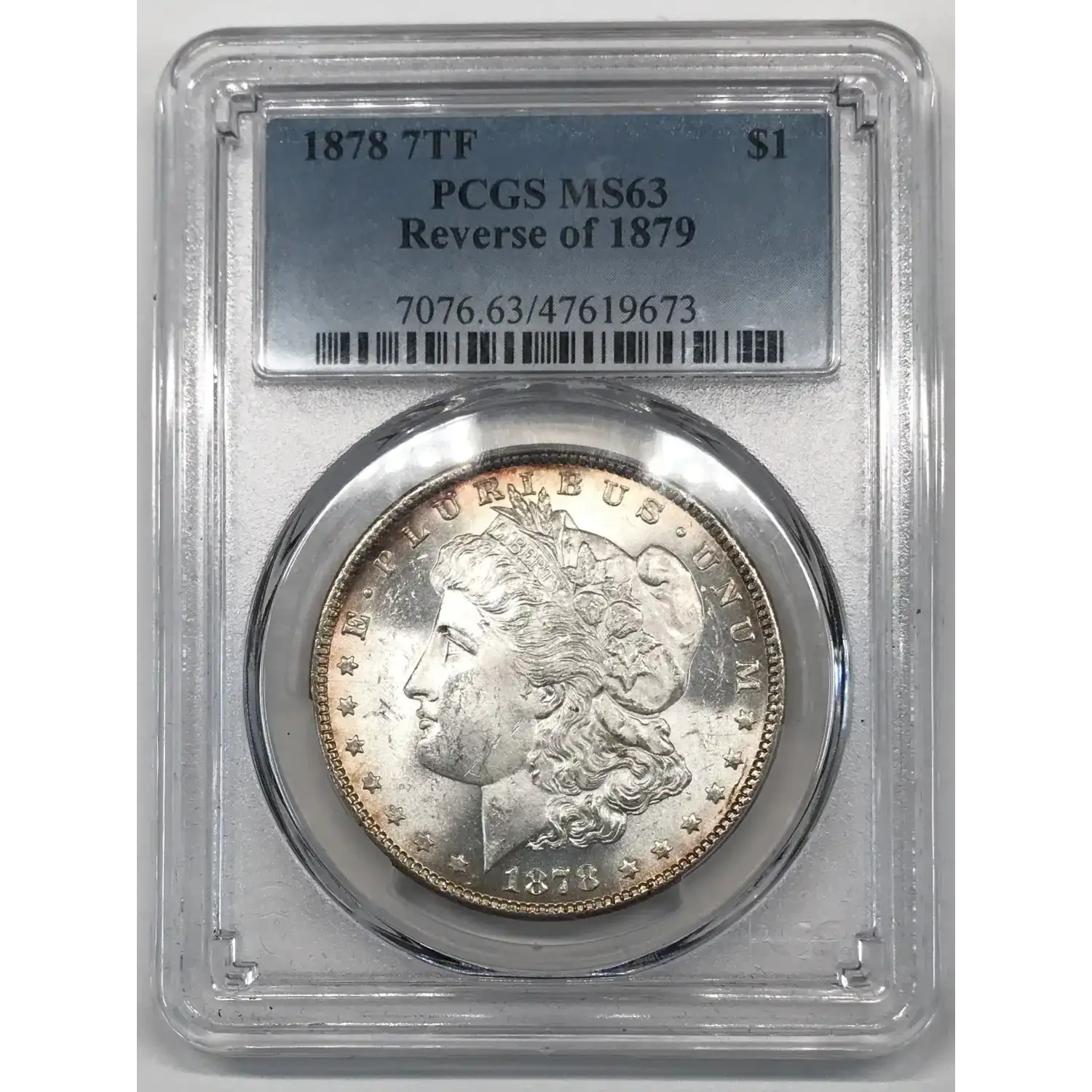 1878 Morgan Silver Dollar PCGS MS-63 7TF, Reverse of 1879