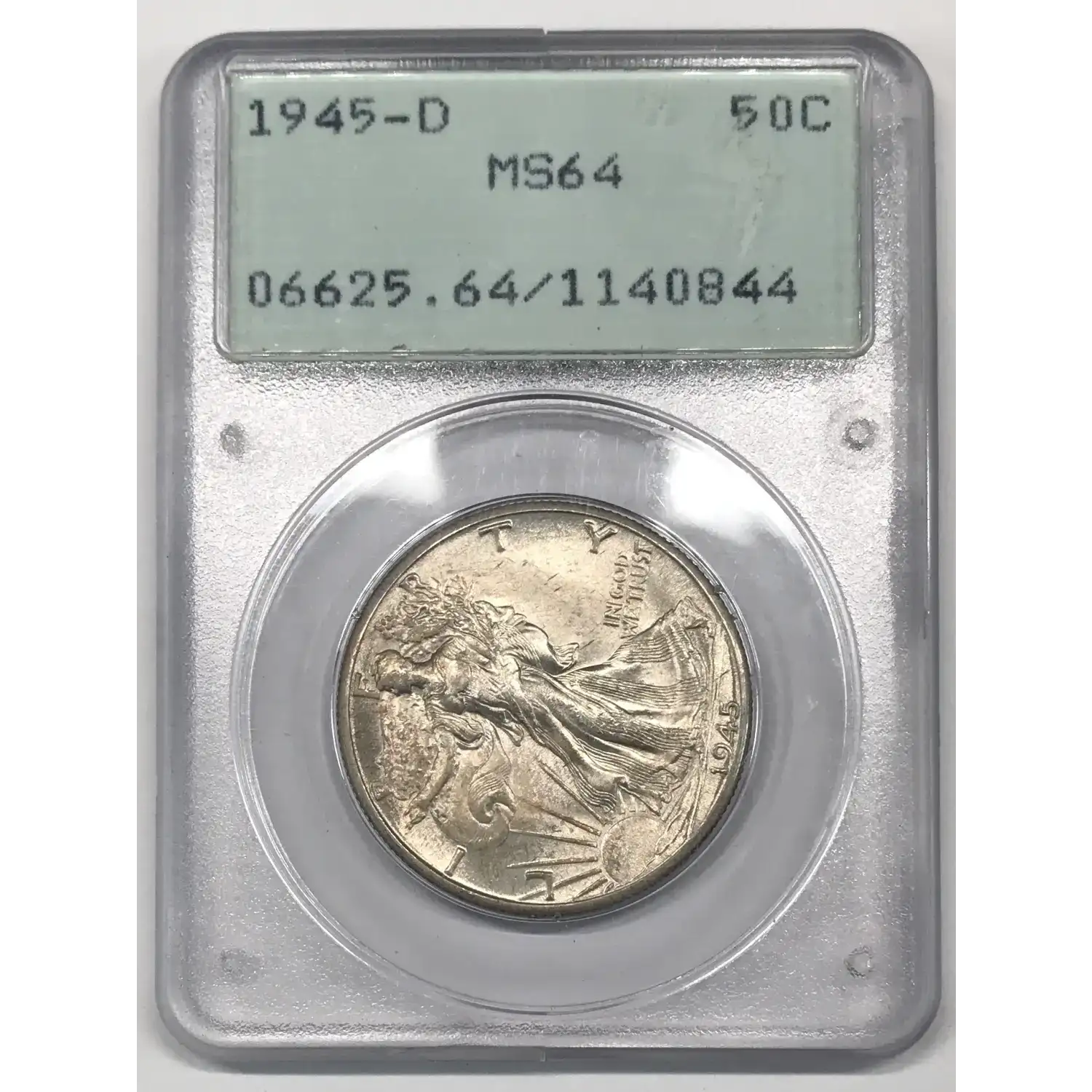 1945 D Walking Liberty Half Dollar PCGS MS-64 - "Rattler" Old Green Holder (OGH)