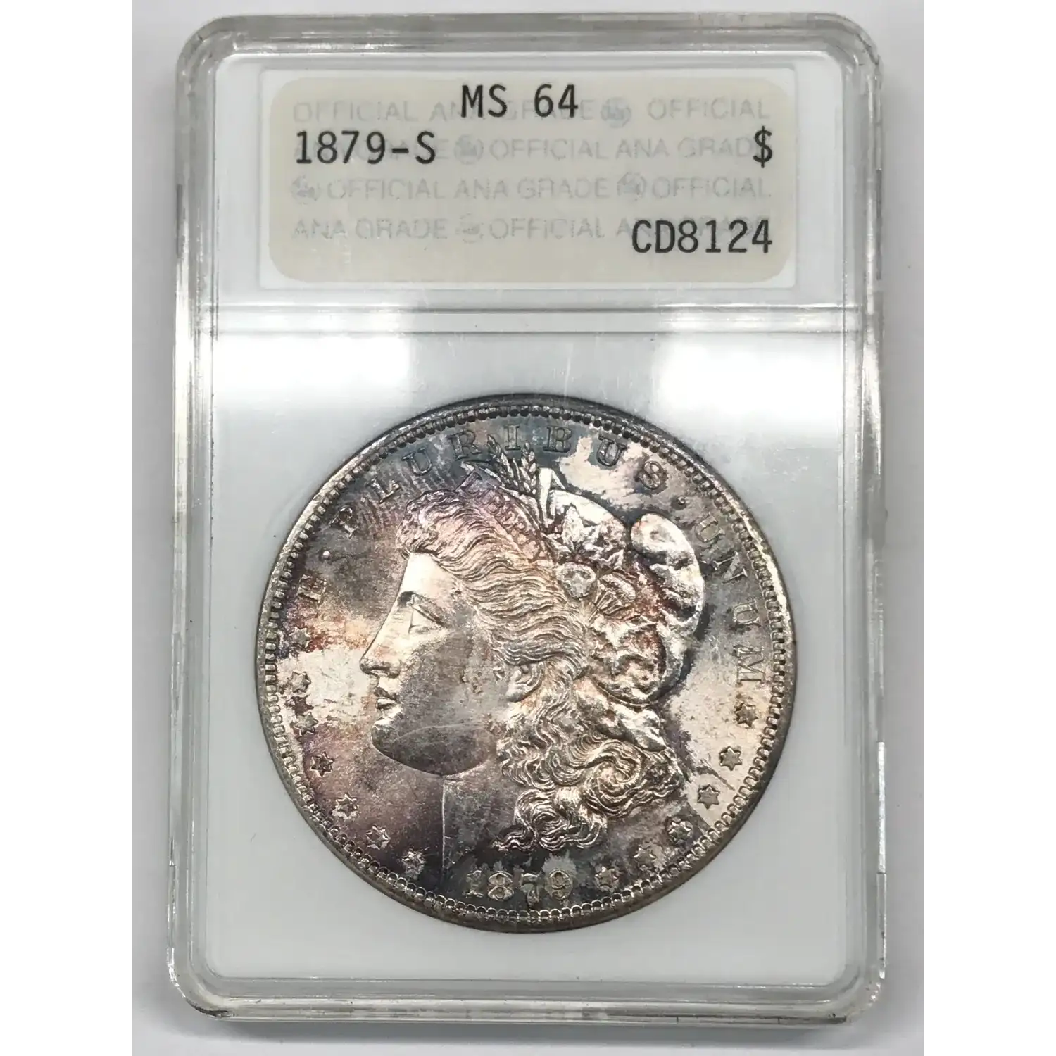 1879 S Morgan Silver Dollar ANACS MS-64 - nice coin - blue ANA text old white soapbox holder