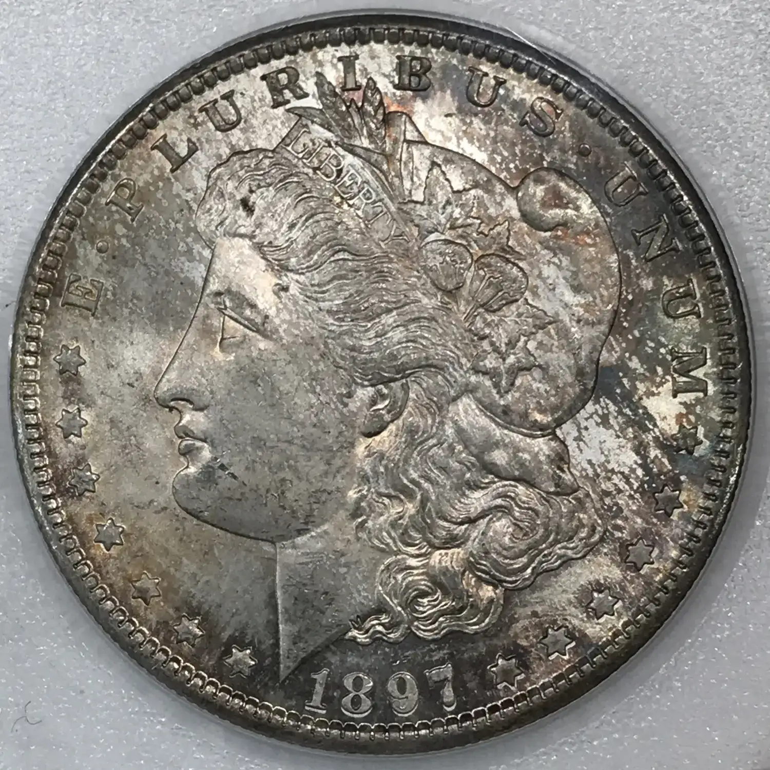 1897 S Morgan Silver Dollar - Uncirculated - PCI Photo-Certified Coin Institute Holder - grade has been covered in order to comply with eBay's listing policies