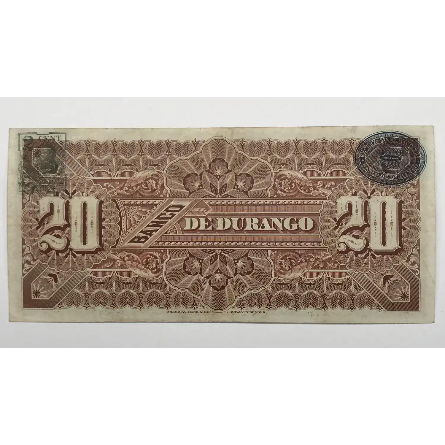 20 Pesos 1891-1914, 1891 ISSUE c. Series H. 1.3.1914; J, March 1914. (BK-DUR-27). Mexico S275
