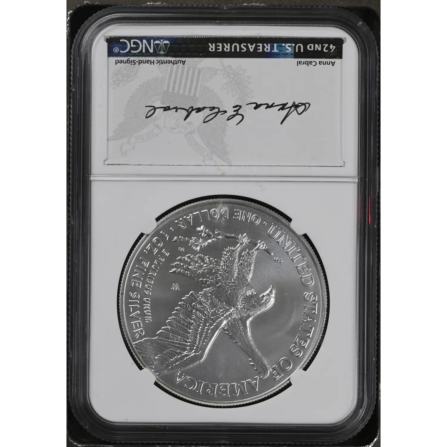 42nd U.S. Treasurer Anna Cabral Authentic Hand-Signed Signature Label (back of slab)