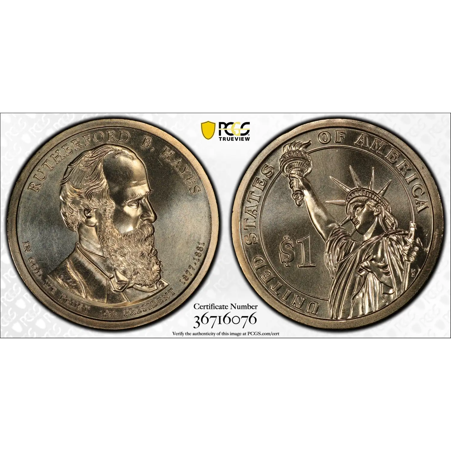 2011 P Rutherford B. Hayes, Position A Presidential Dollar PCGS MS-67 - Gold Shield w TrueView Photo
