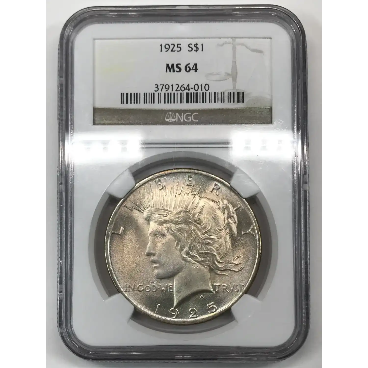 1925 P Peace Silver Dollar NGC MS-64 - attractive coin, nice color/tone