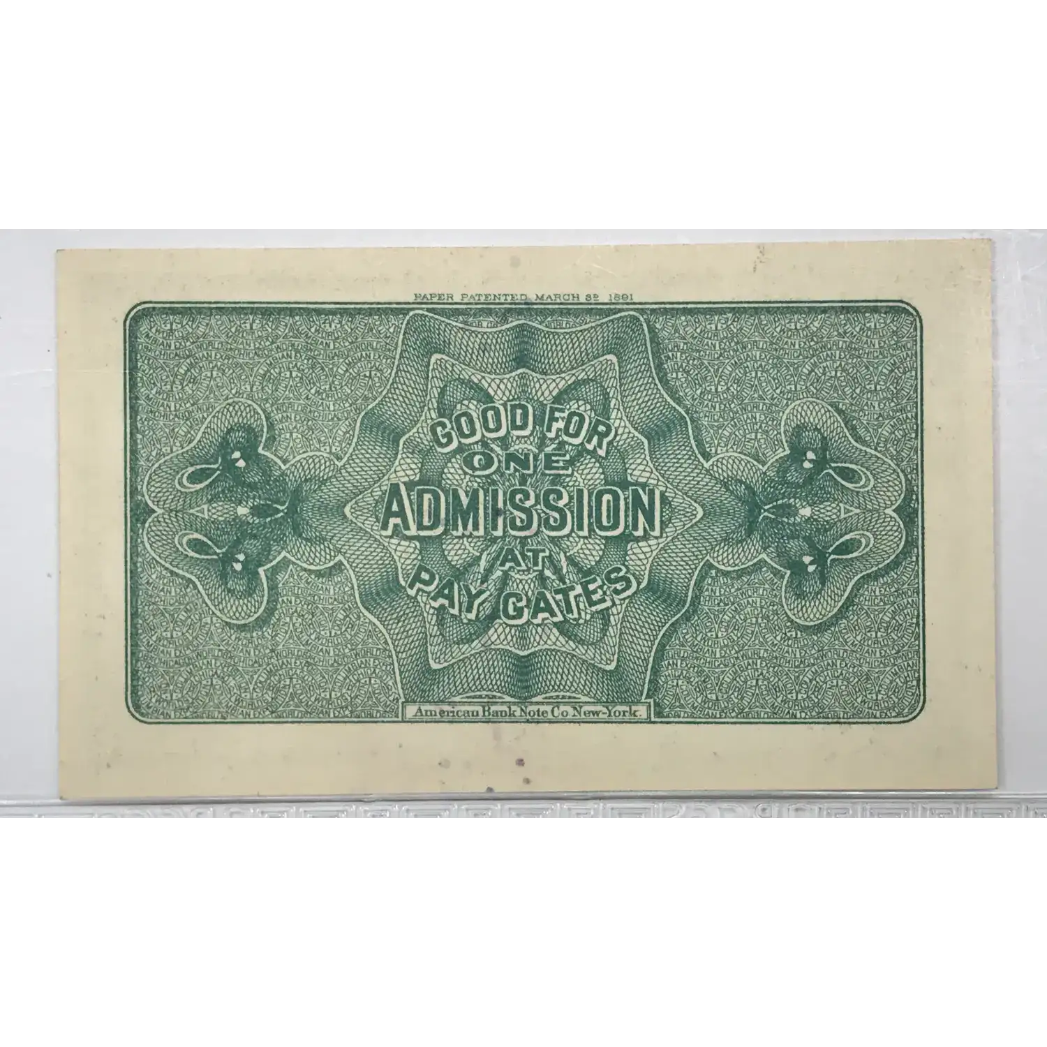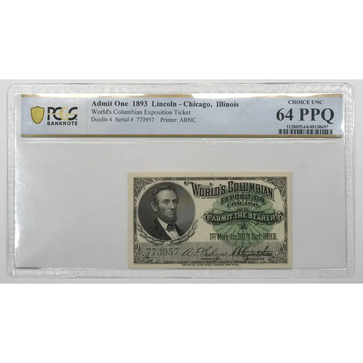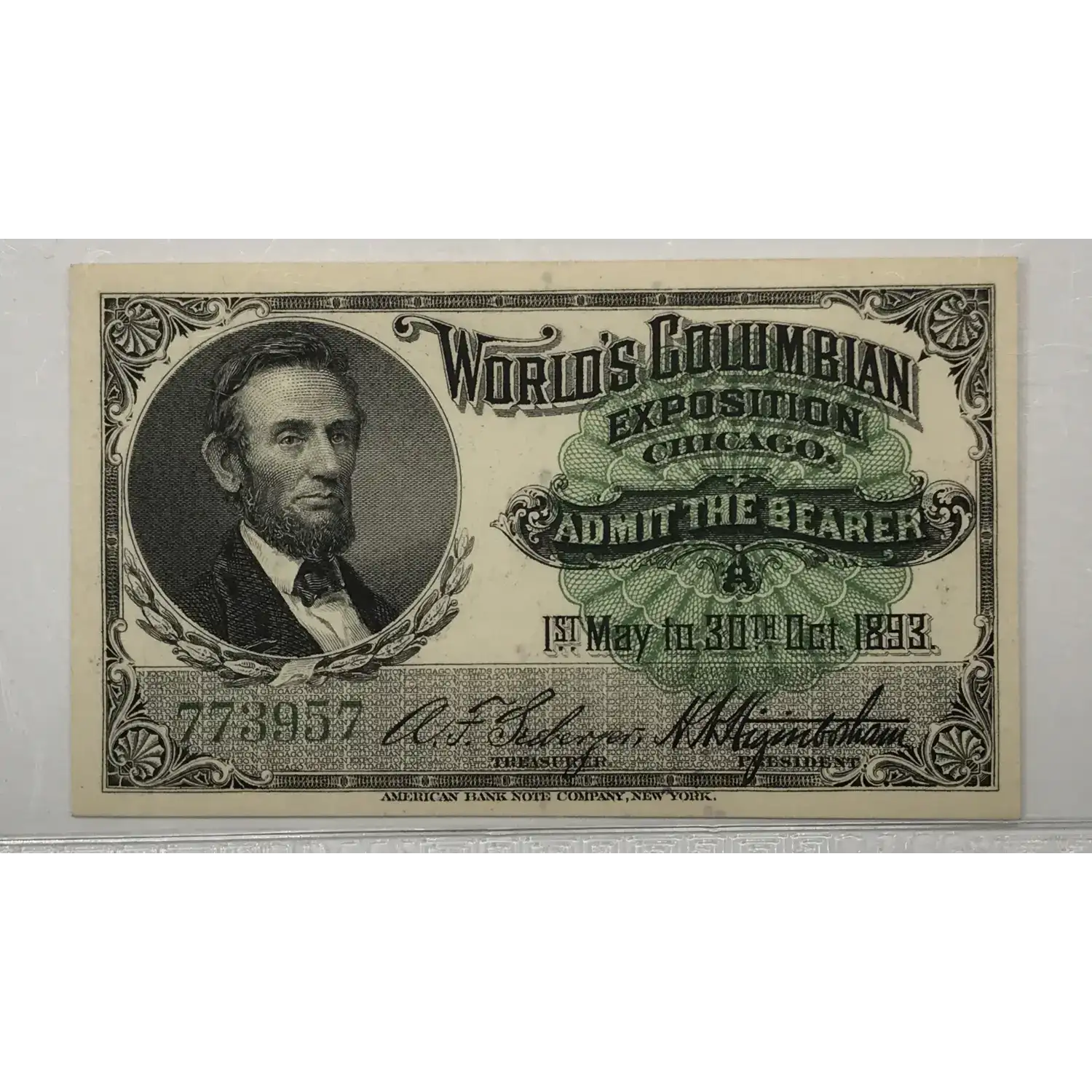 1893 World's Columbian Expo Chicago IL Admit One Ticket PCGS CU 64 PPQ - Lincoln, Doolin 4 - American Bank Note Company (ABNC)