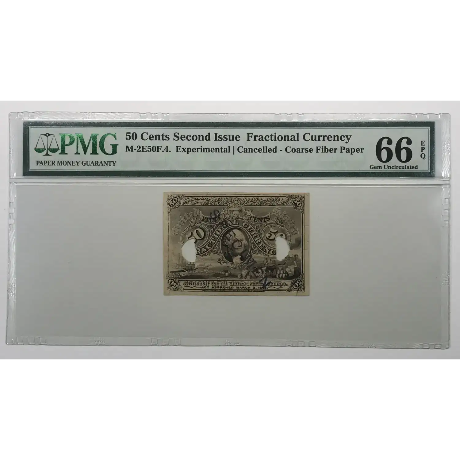 1863-67 50 Cents Second Issue Fractional Currency PMG 66 EPQ FR#1314exnmf/M-2#50F.4. Specimen/Experimental Cancelled - Coarse Fiber Paper