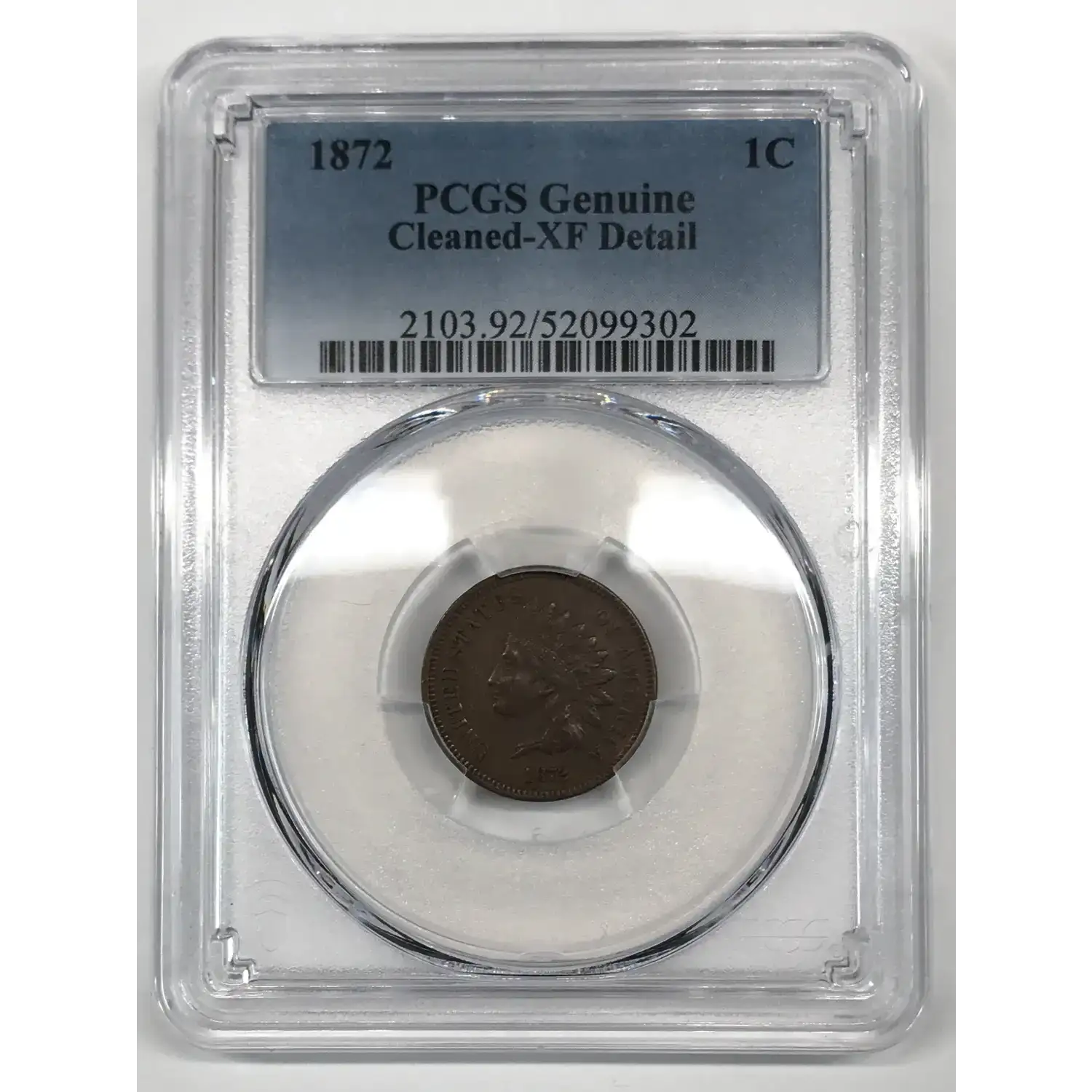 1872 P Indian Head Cent PCGS Genuine - XF Details (cleaned) BN - nice coin despite details grade