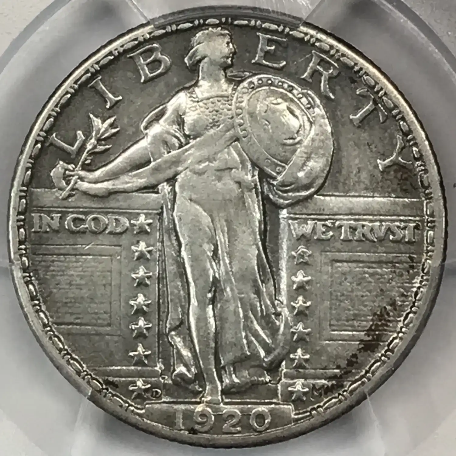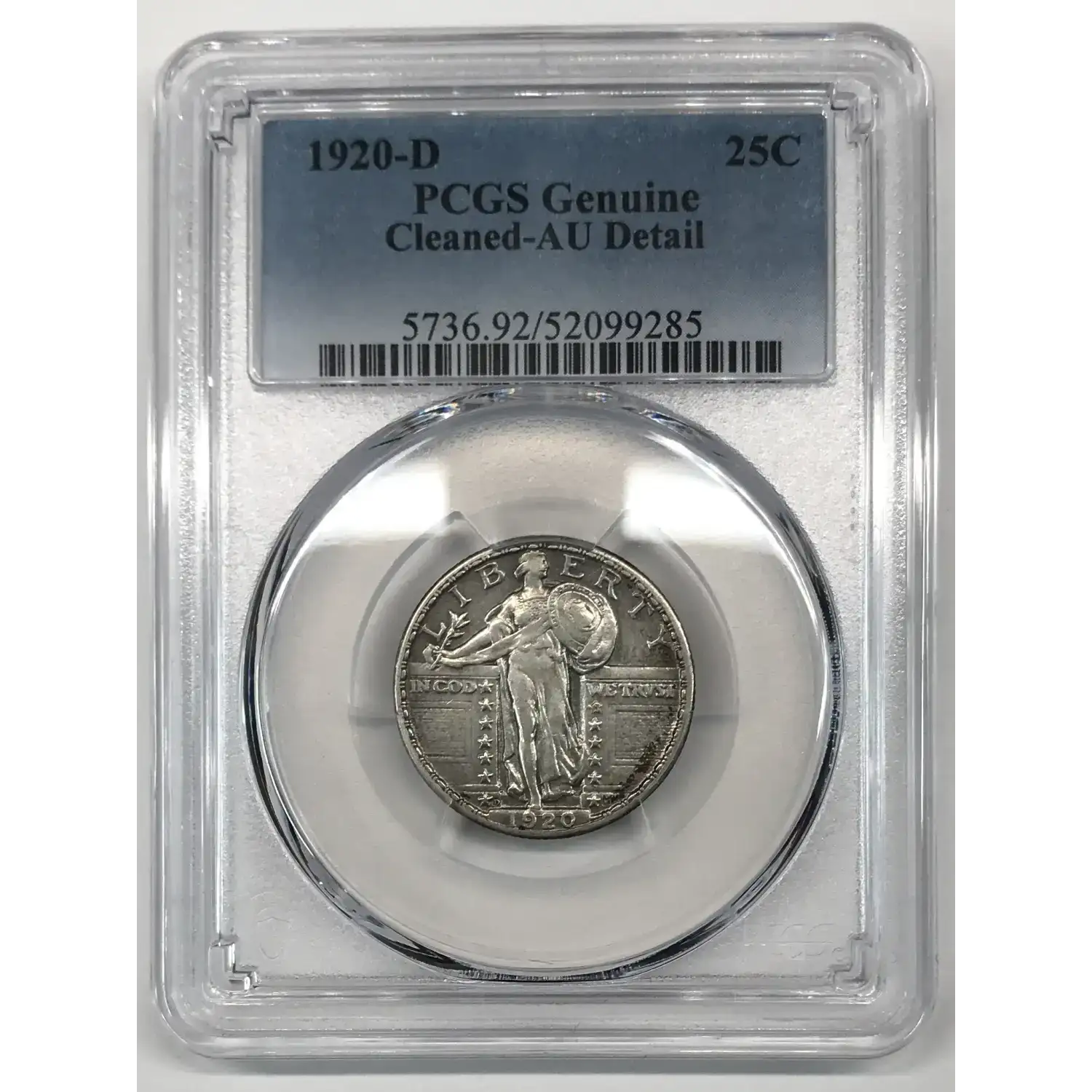 1920-D Standing Liberty Quarter PCGS Genuine - AU Details (cleaned) - nice coin