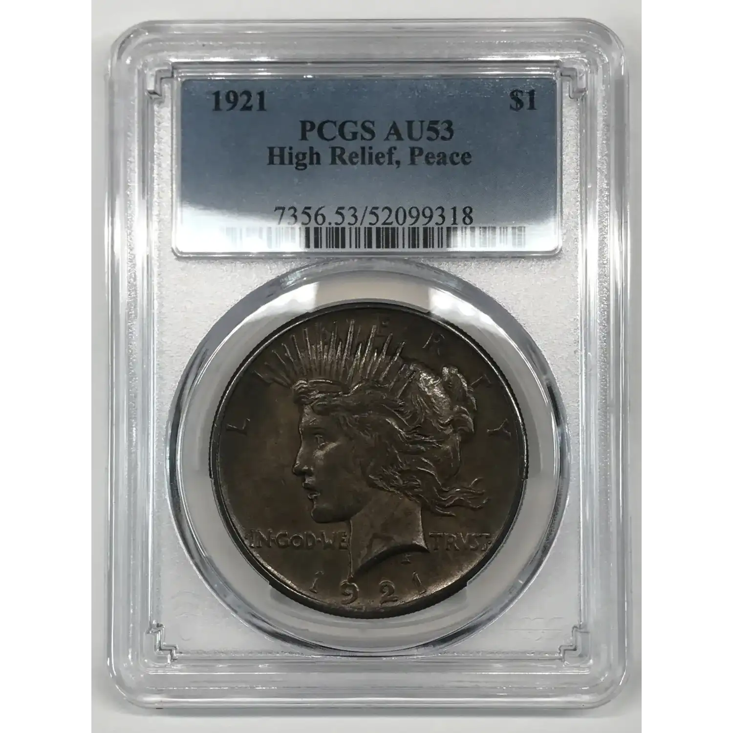 1921 Peace Silver Dollar PCGS AU-53 High Relief