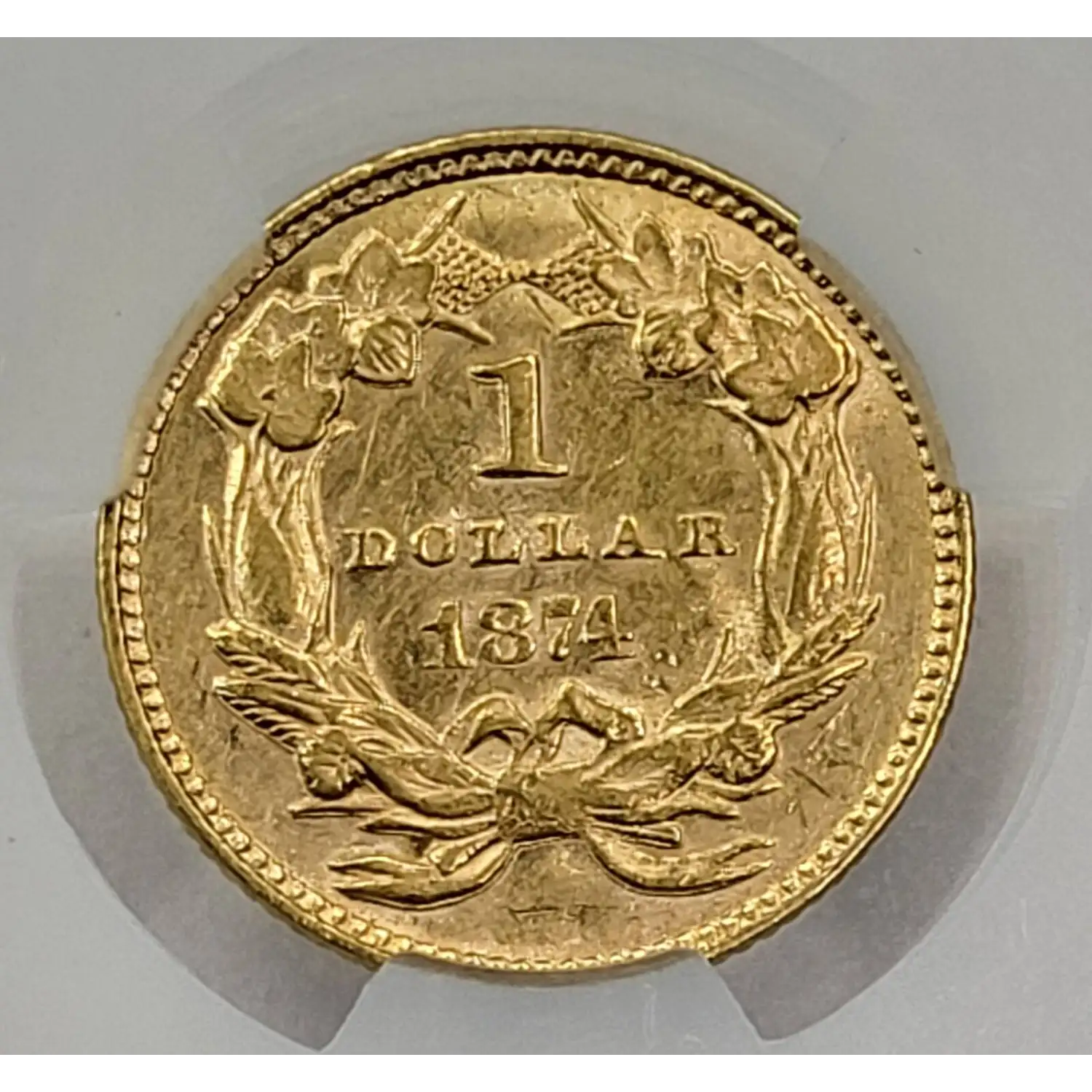 1874 Indian Princess Gold Dollar CACG AU Details Harshly Cleaned