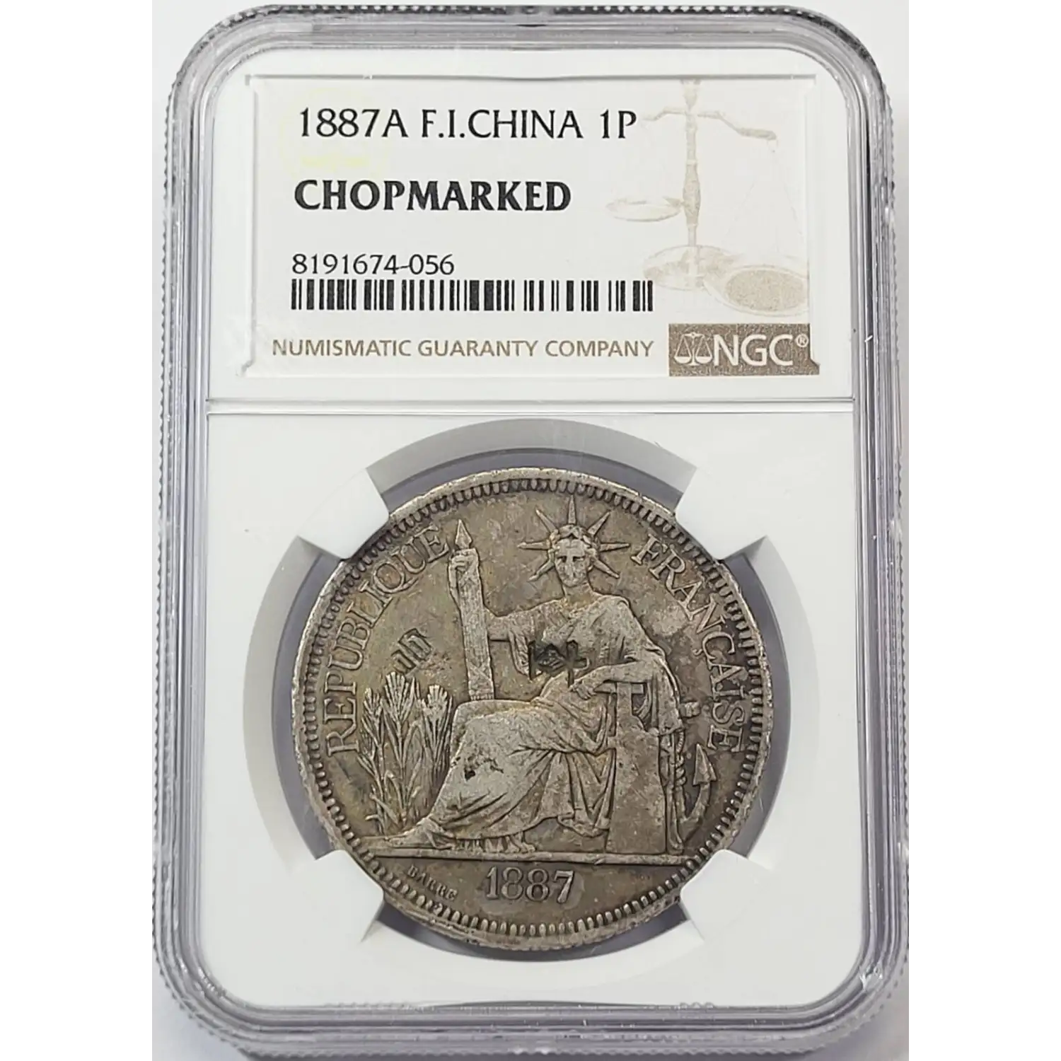 1887 FRENCH INDO-CHINA Silver PIASTRE NGC CHOPMARKED A