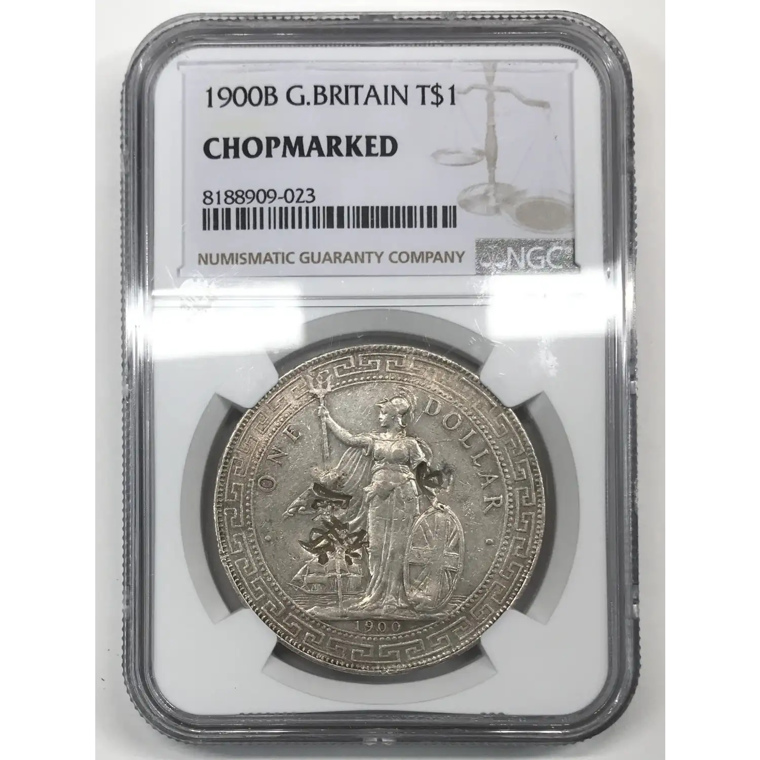 1900 B Great Britain Silver Trade Dollar NGC CHOPMARKED obverse & reverse