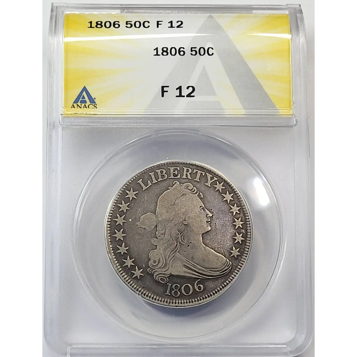 1806 Draped Bust Half Dollar ANACS F-12 Pointed 6, with stem