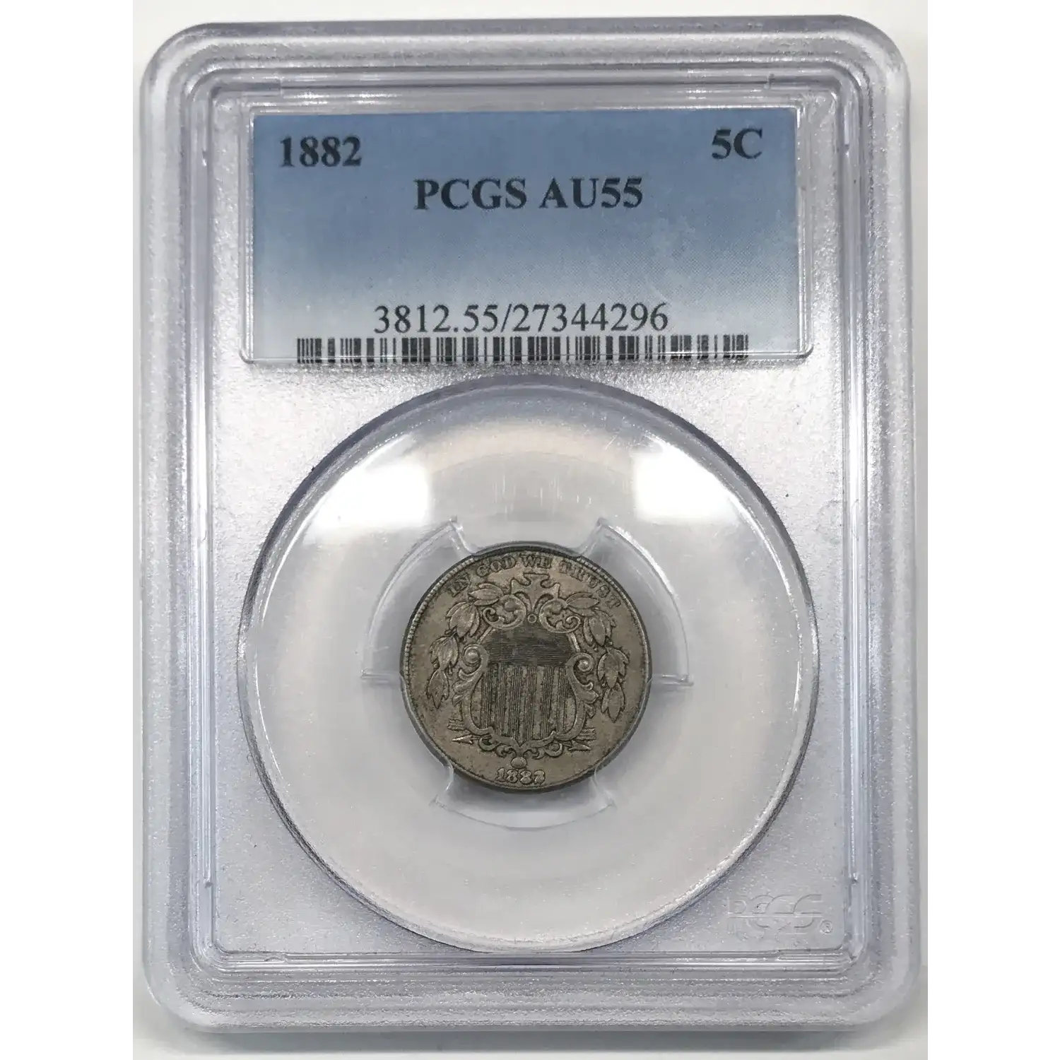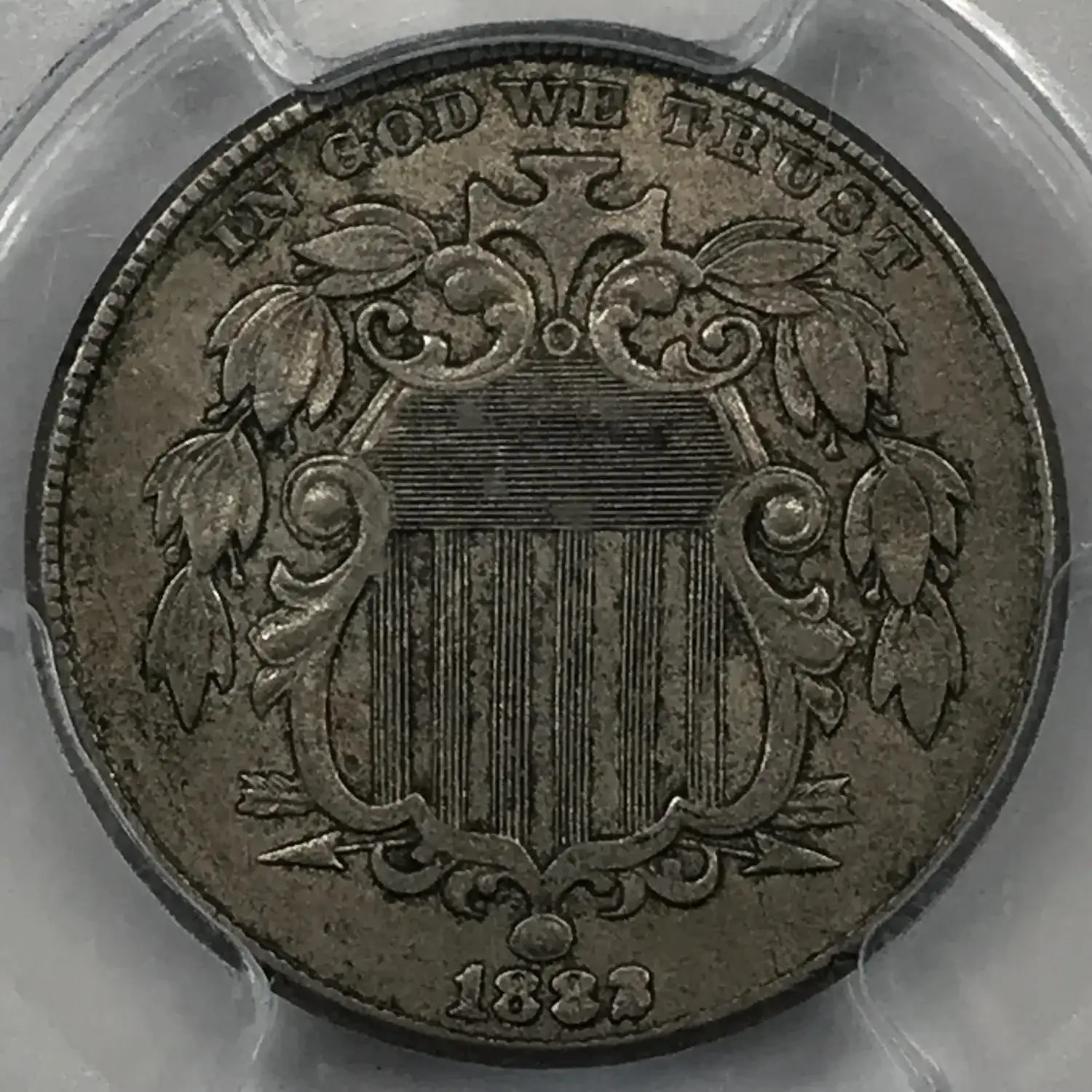 1882 P Shield Nickel PCGS AU-55 - Die Chip Filled 2