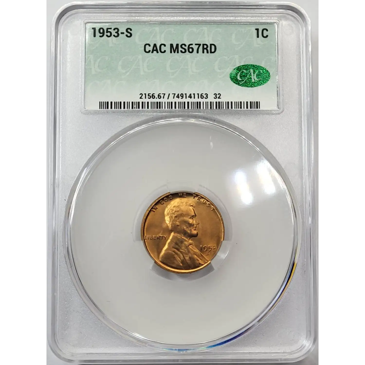 1953-S Lincoln Wheat Cent CACG MS 67 RD CAC