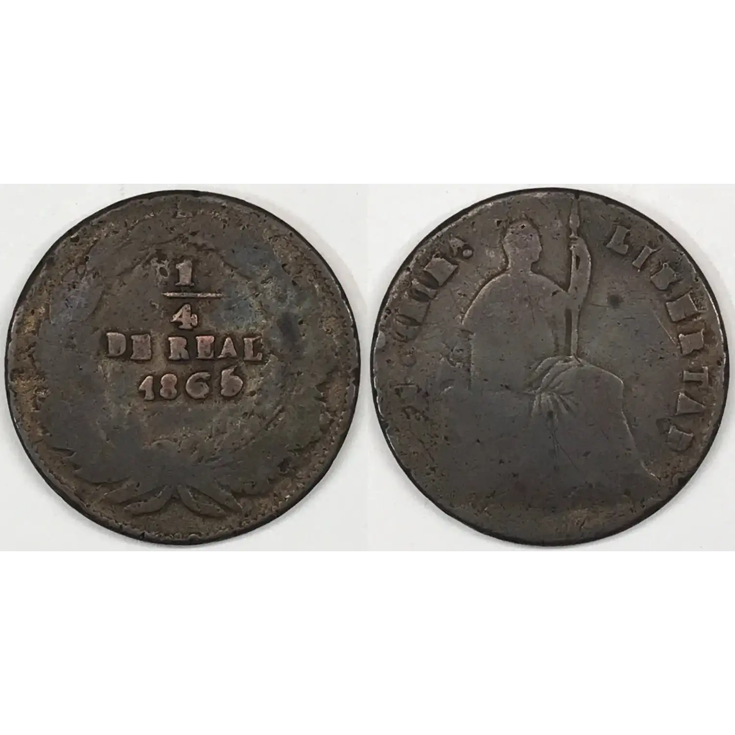 1865/1 Mexico Copper 1/4 REAL (Un Quarto/Una Quartilla) Chihuahua