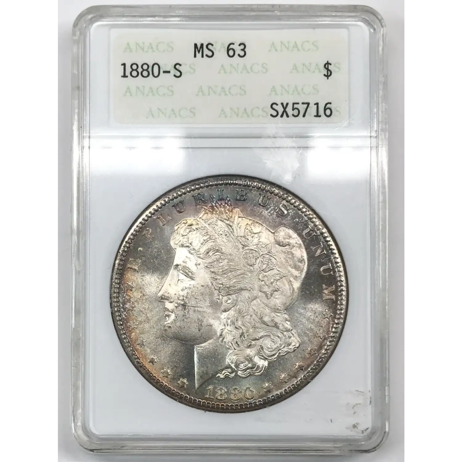 1880 S Morgan Silver Dollar ANACS MS-63 - nice coin for the grade - old white soapbox holder