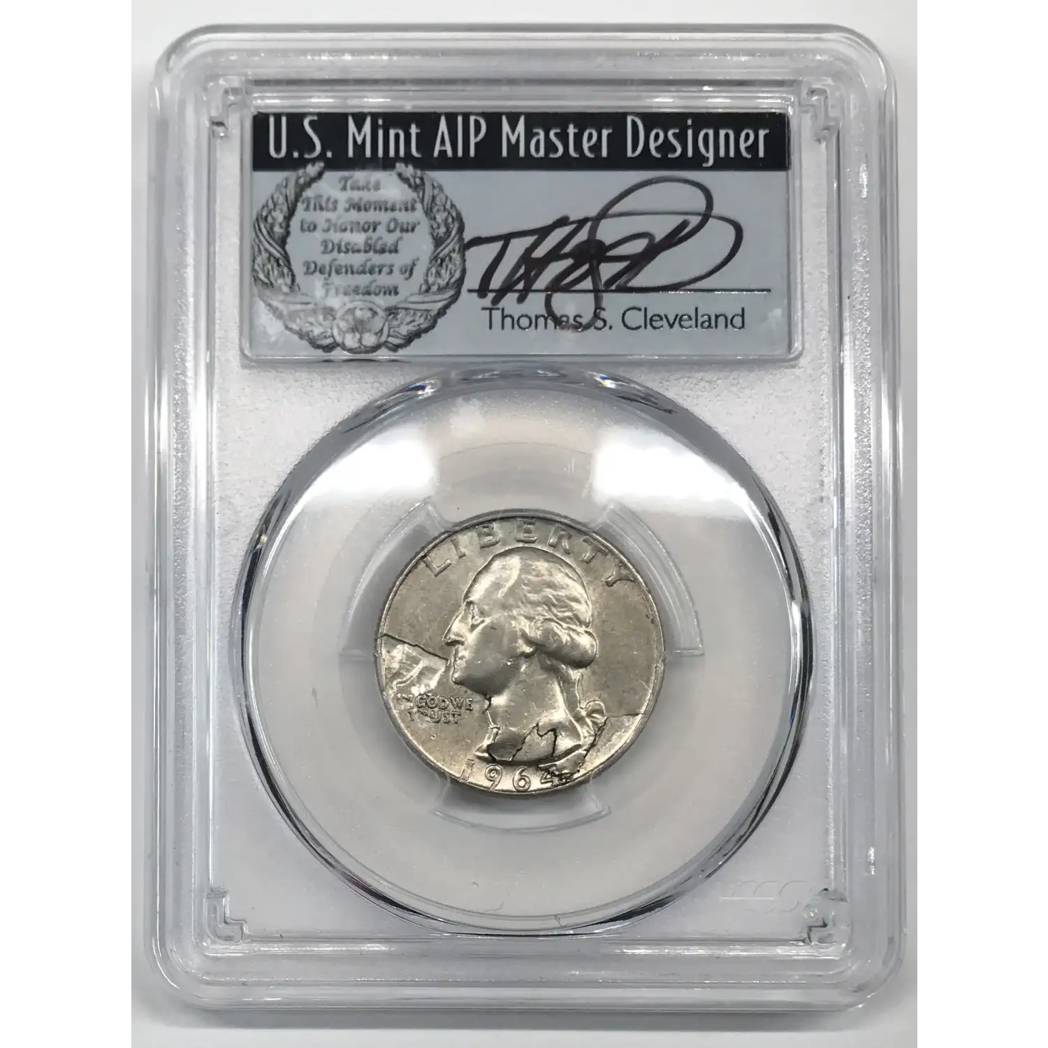 1964 D Silver Washington Quarter PCGS AU-50 Mint Error Obverse Planchet Lamination Peel - US Mint AIP Master Designer Thomas S. Cleveland Signature Label