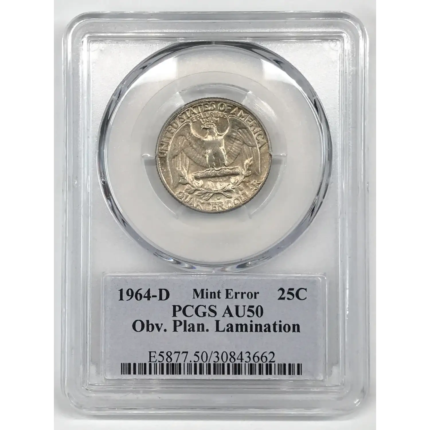 1964-D Silver Washington Quarter PCGS AU-50 Planchet Lamination